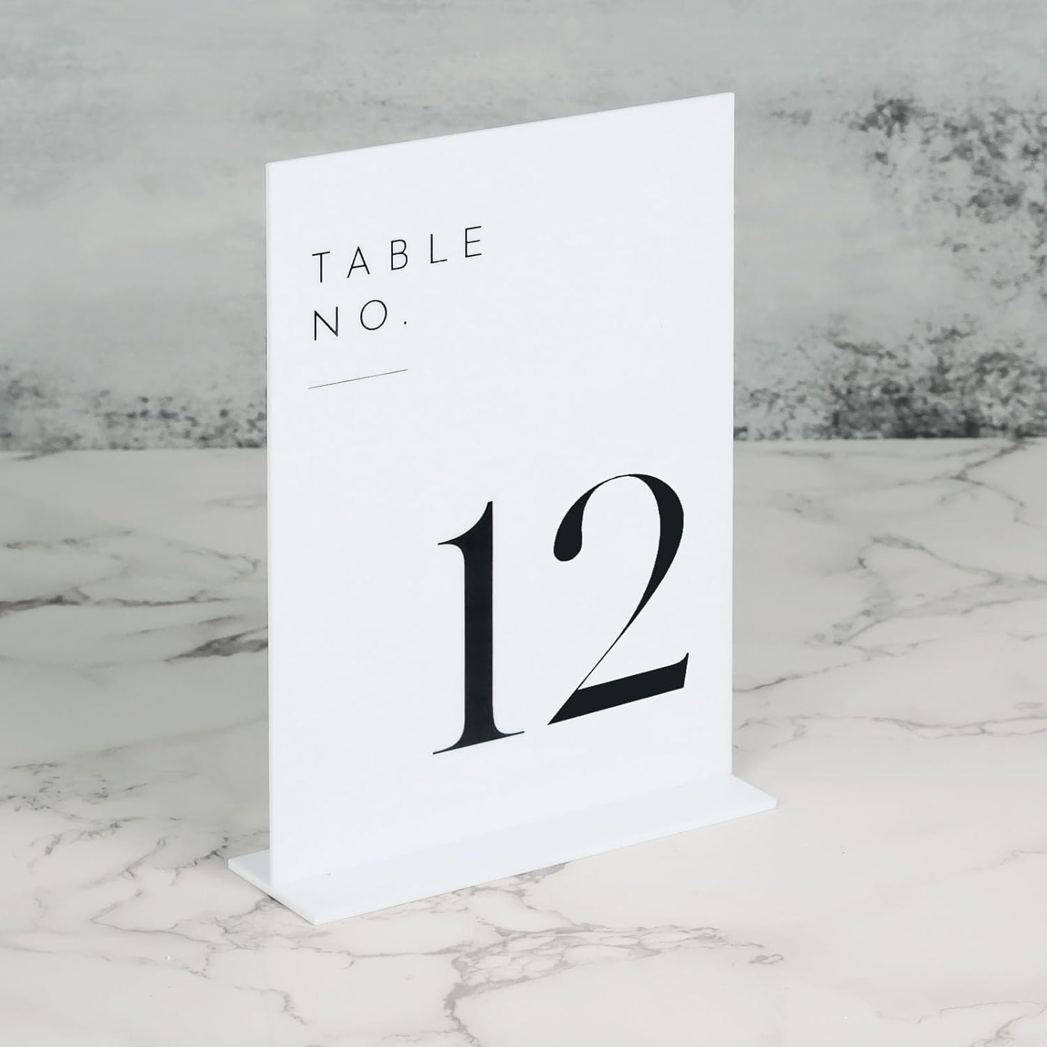 - PREMIUM QUALITY: These white acrylic table numbers with holders are made from high quality white acrylic panels and then printed with white letters in a simple arch design that won't go out of style and will last a long time.