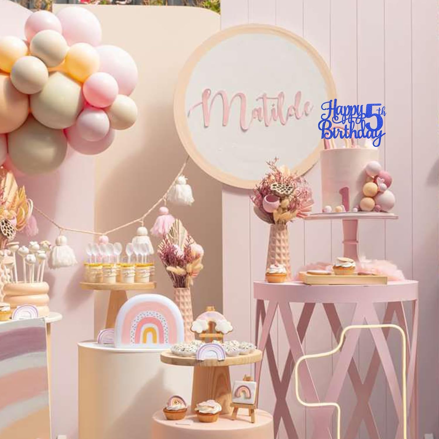 1 PCS Happy 5th Birthday Cake Topper Glitter Cheers to 5 Years Cake Pick Five Fabulous Cake Decoration for 5th Birthday Theme Party Decorations Supplies Blue