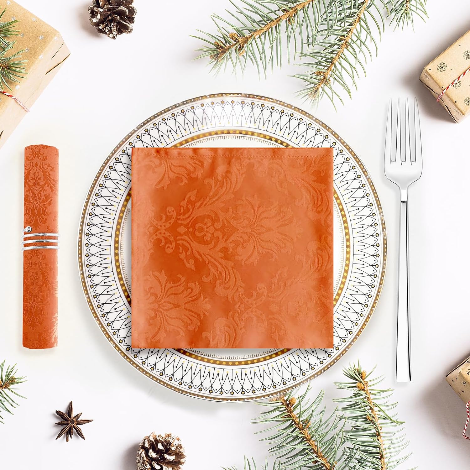 SASTYBALE Rust Jacquard Square Napkin, Damask Wrinkle Free Soft Polyester Napkins, Thanksgiving Fabric Cloth Napkins for Christmas, Wedding,Holiday, Party, Dinners, Set of 4 (Rust, 20X20 inch Napkin)