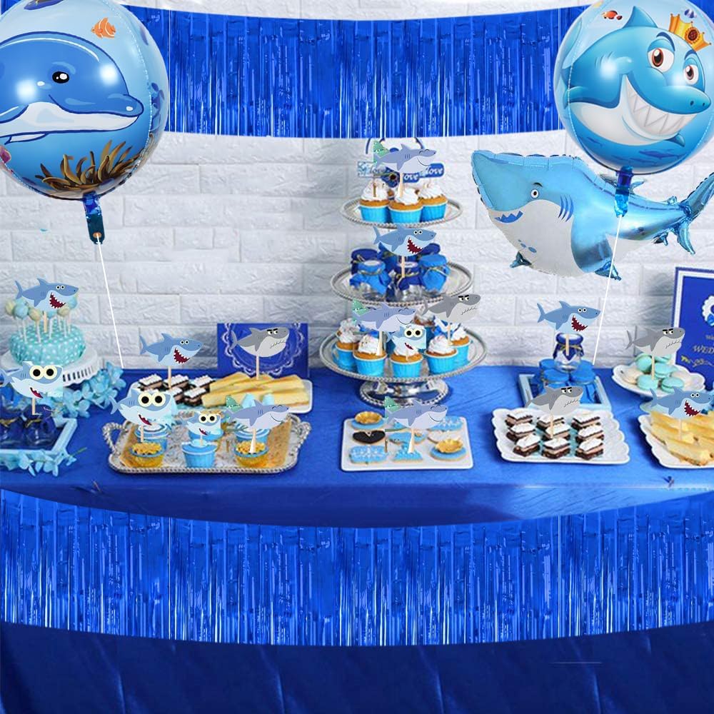 BEISHIDA 3 Packs Metallic Foil Fringe Garland Blue Wall Hanging Tinsel Fringe Banners for Valentine New Year Floats Bridal Shower Wedding Birthday Halloween Holiday Party Decoration(30 Feet)