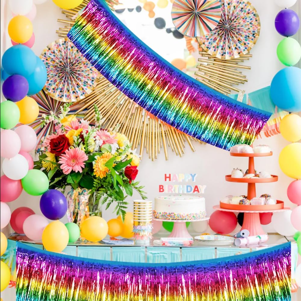 BEISHIDA 3 Packs Metallic Foil Fringe Garland Dark Rainbow Wall Hanging Tinsel Fringe Banners for Halloween Car Floats Bridal Shower Wedding Birthday Easter Graduation Holiday Party Decoration(30 Feet
