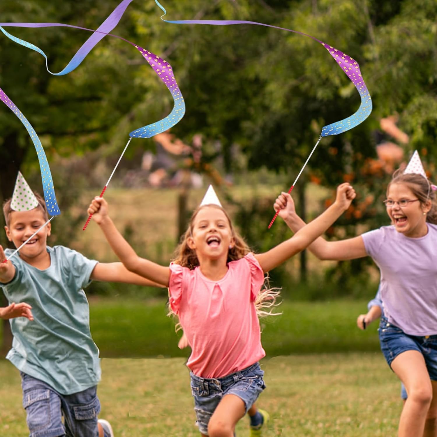 - Gymnastics ribbons are suitable for indoor and outdoor games and kids. The bright colors and dancing and spinning are sure to attract young children's attention and inspire them to actively participate in imaginative play. Suitable for children of all ages and abilities. Kids will love exploring the endless possibilities of fun and movement with their friends.