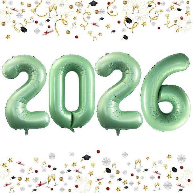 GOER 42 Inch 2026 Foil Number Balloons for 2026 New Year Eve Festival Party Supplies Graduation Decorations (Olive Green)