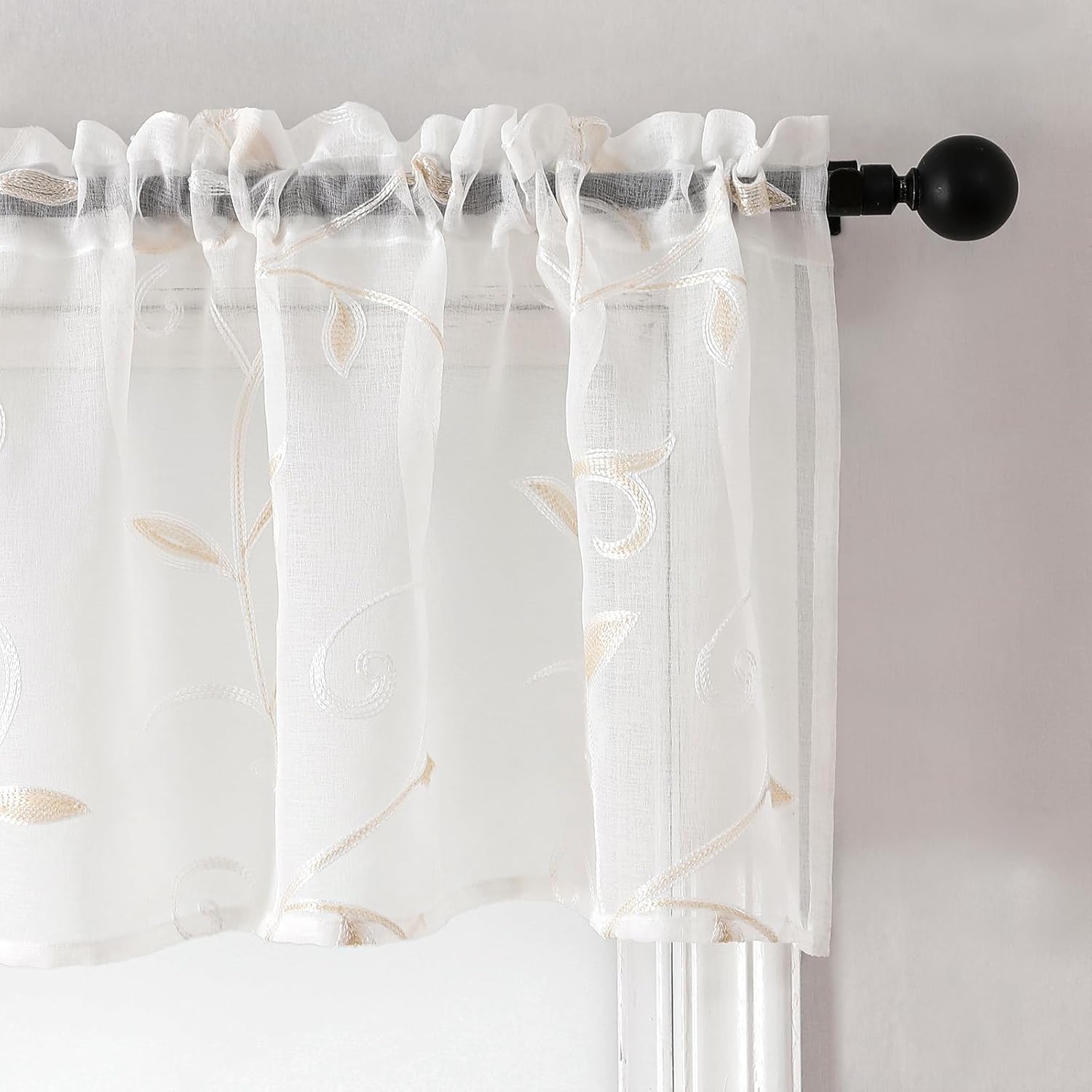 VISIONTEX Sheer Voile Curtain Valances, Decorative Leaves Embroidered, Rod Pocket Window Treatment for Kitchen/Rustic Bedroom/Living Room (54 x 16 Inch,1 Panel)