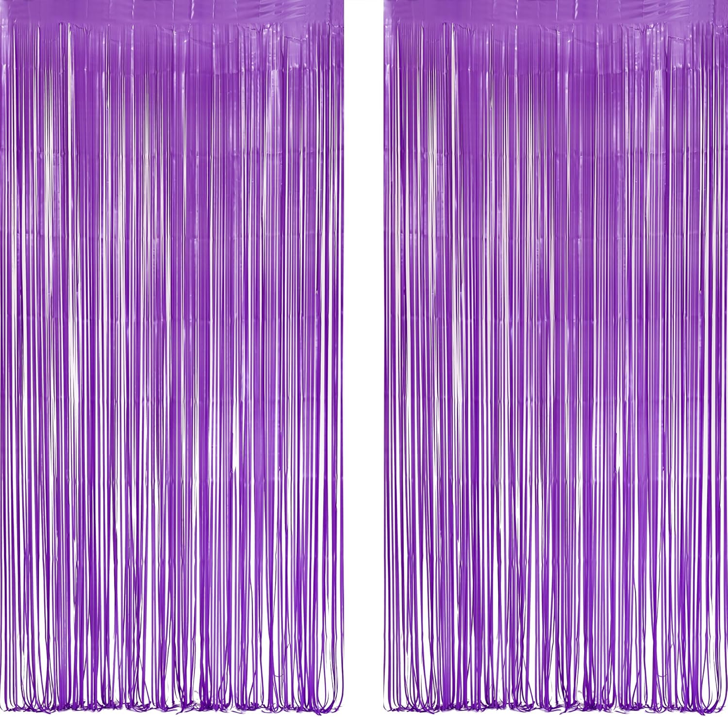 Purple Foil Fringe Party Backdrop - GREATRIL Party Streamers for Mermaid/Butterfly/Wednesdays/Star Birthdays Party Decoration - 3.2ft X 8.2ft - 2 Packs