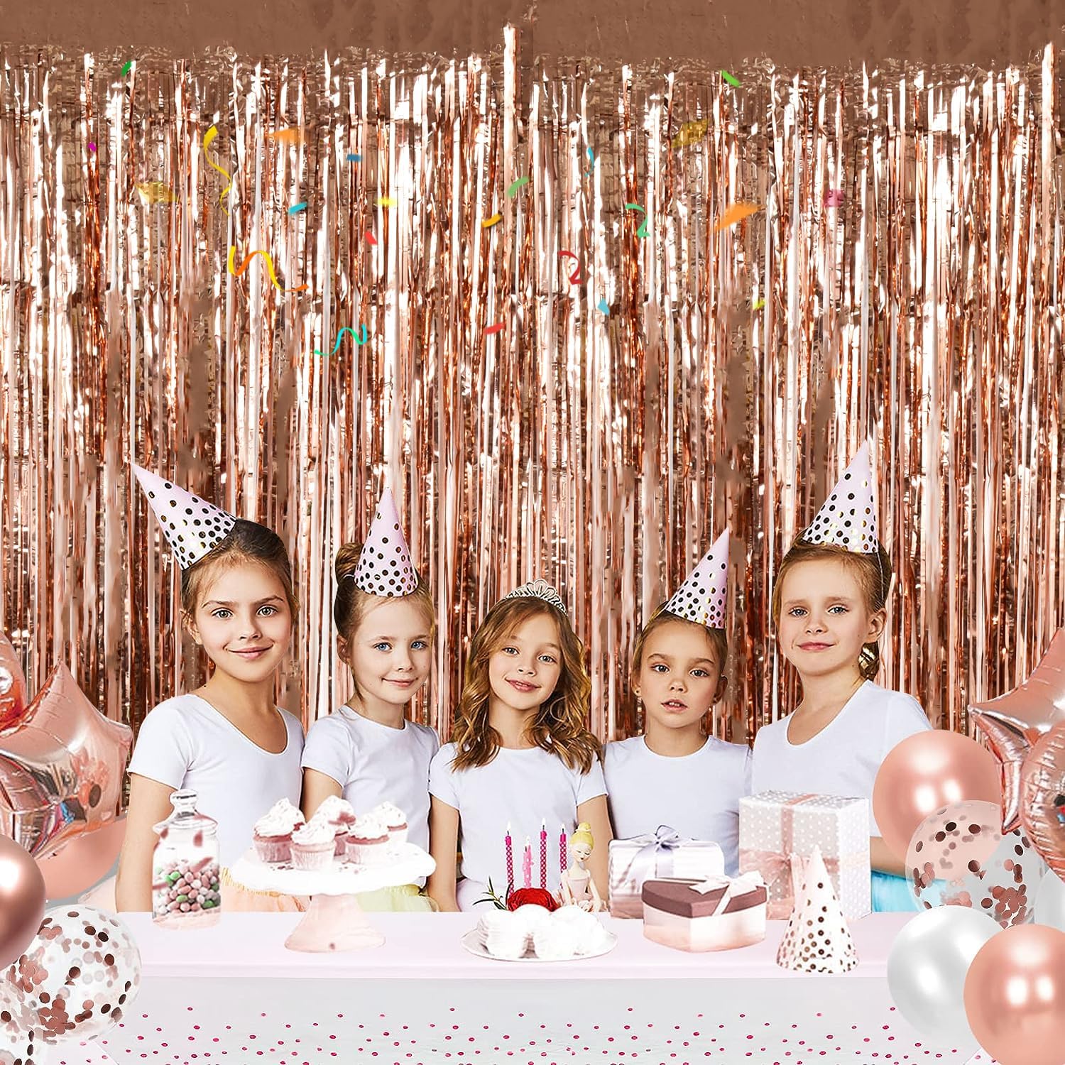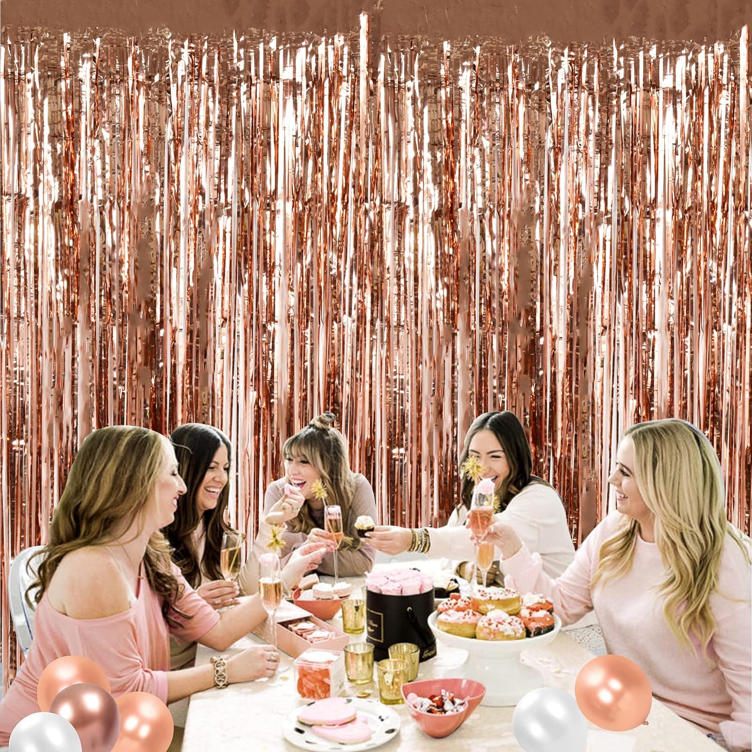 - 2 Pack Rose Gold Party Streamers - The foil curtain streamers is suitable to decorate all the party theme: birthday party, baby shower, wedding party,kids’ birthday party, outdoor party. You can decorate the walls, window, doors with this rainbow crepe paper to make your party interesting.
