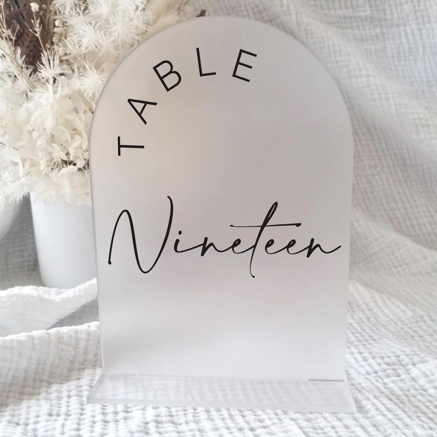 - SIMPLE & ELEGENT DESIGN: These modern minimalistic acrylic arch table numbers are the perfect touch to add to your wedding. We love the sleek, clean lines of these frosted acrylic signs, they are a beautiful wedding table centerpieces decorations, perfect for displaying on Tabletop Centerpiece.