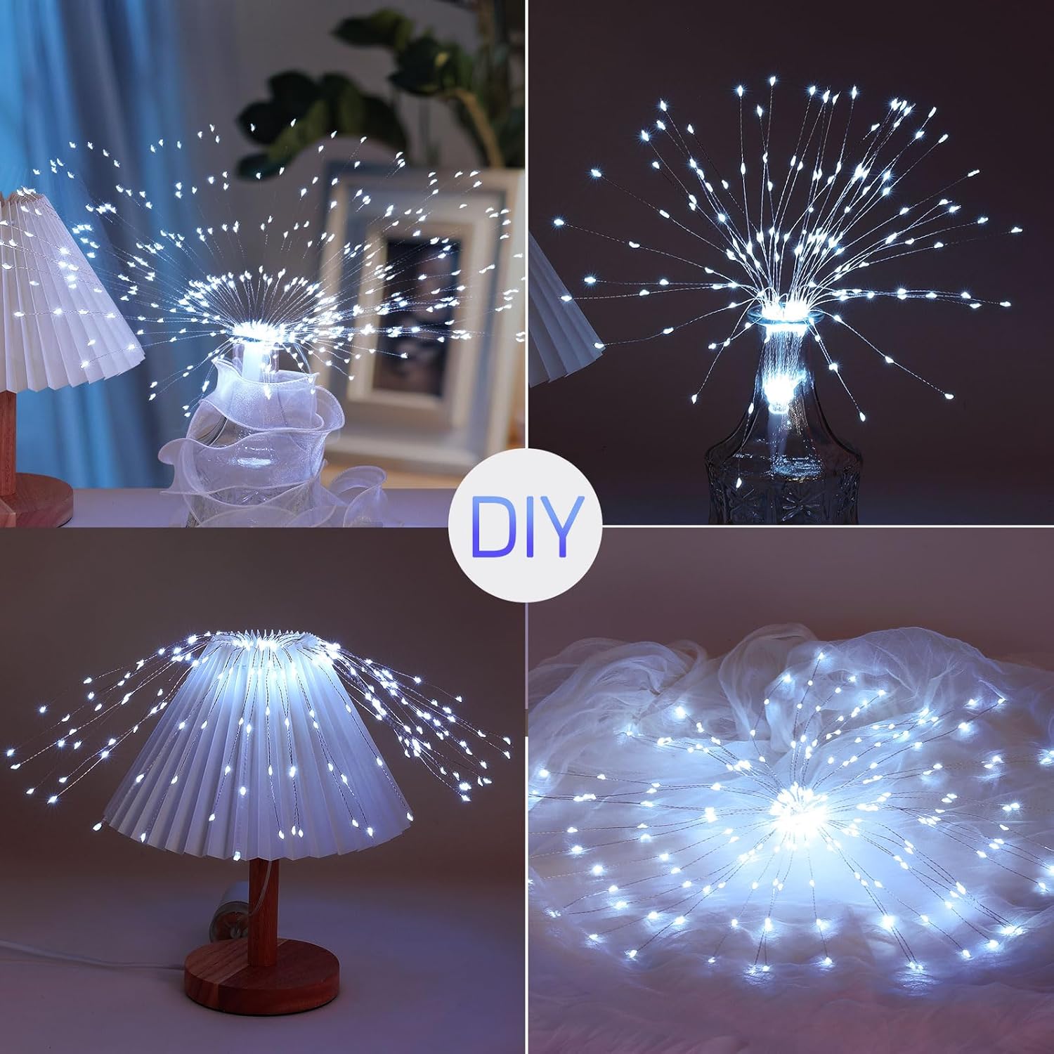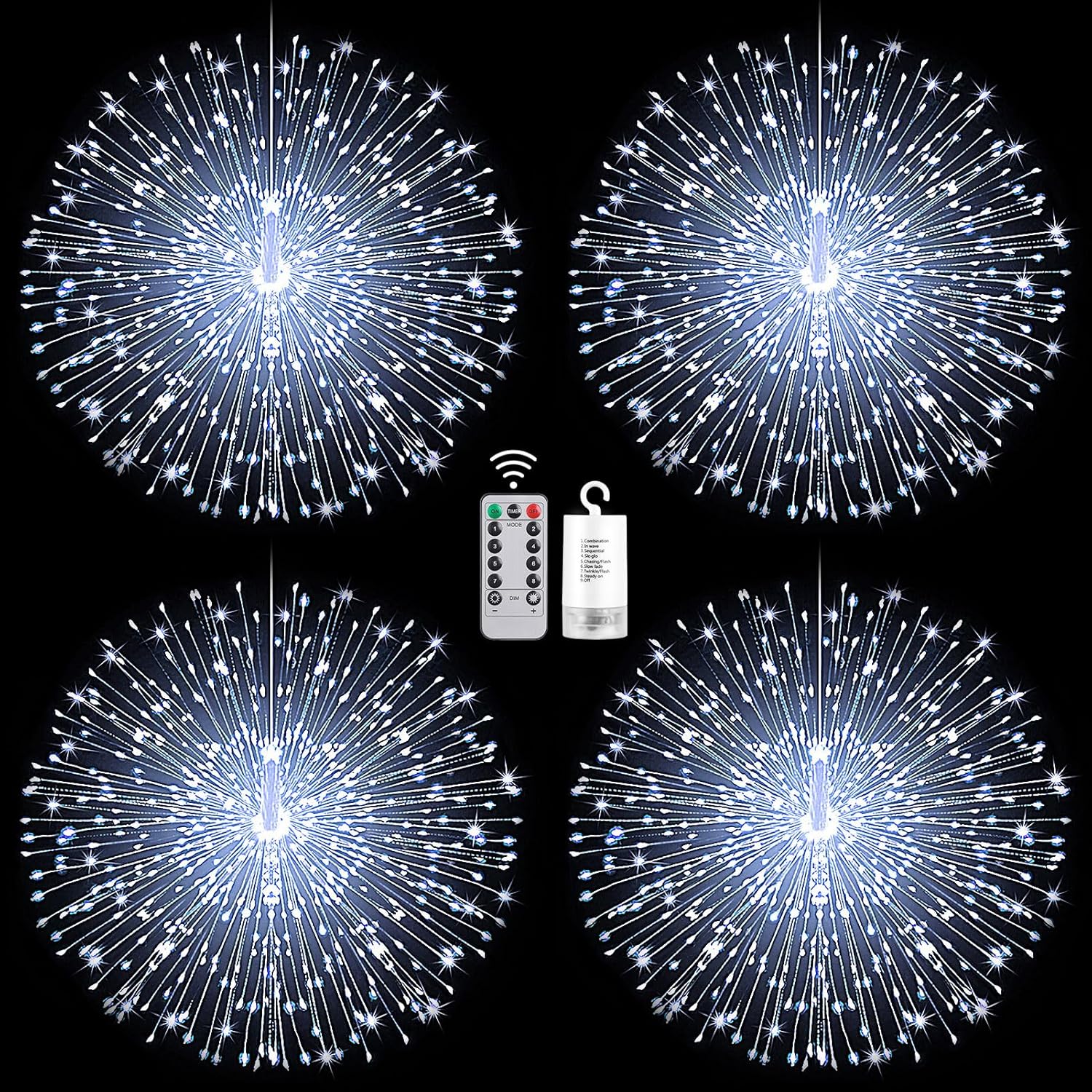 Admitrack Starburst String Lights Christmas Lights, 225 LED 8 Modes Dimmable with Remote Control, Waterproof Copper Wire Decorative Hanging for Party Patio Garden Decoration (White, 4PC)