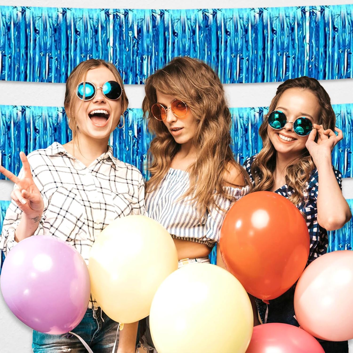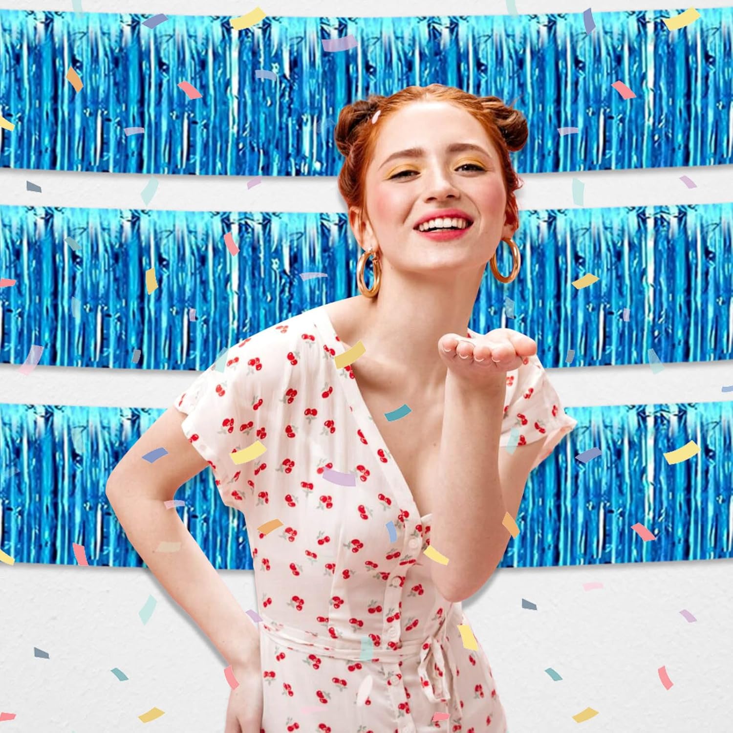 4 Pack 10 Feet Lake Blue Foil Fringe Garland Metallic Tinsel Streamers Banner Wall Hanging Curtain Backdrop for Parade Floats, Wedding, Graduate, Mother's Day, Birthday Party Decoration
