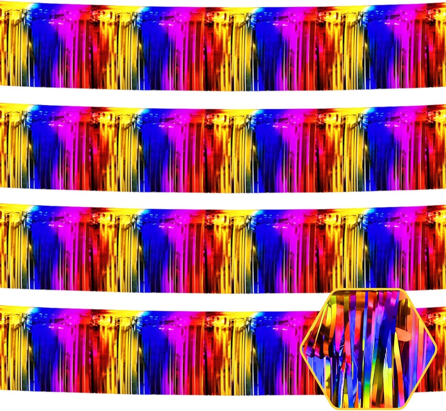 4 Pack 10 Feet Rainbow Foil Fringe Garland Metallic Tinsel Streamers Banner Wall Hanging Curtain Backdrop for Parade Floats, Wedding, Graduate, Mother's Day, Birthday Party Decoration