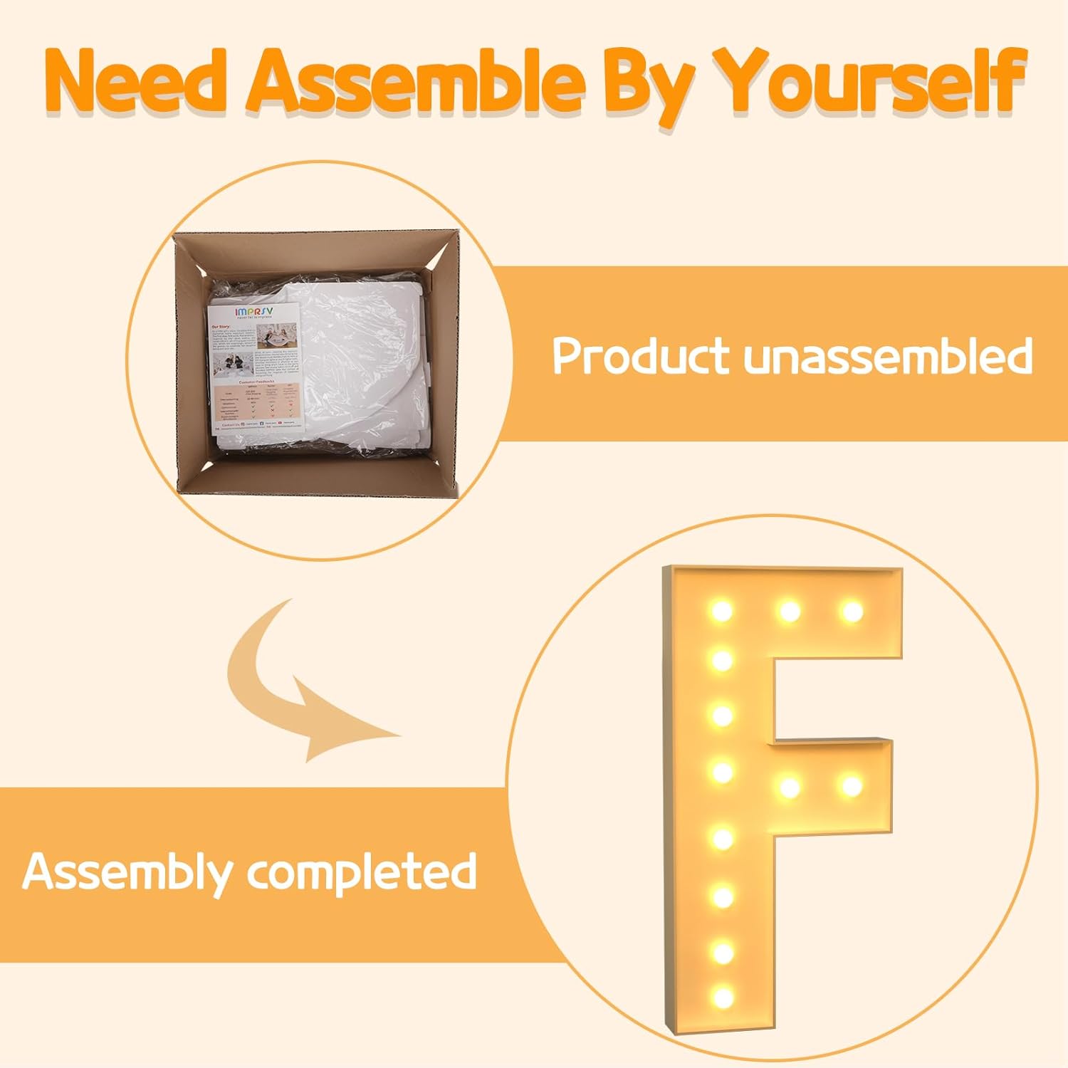 - Assembly Required: Our large marquee letters is made from foam board and easy to assemble with our splicing mode. Just follow the numbered instructions to align and insert the bottom plate, and reinforce it with a hot glue gun. Then, you're done!