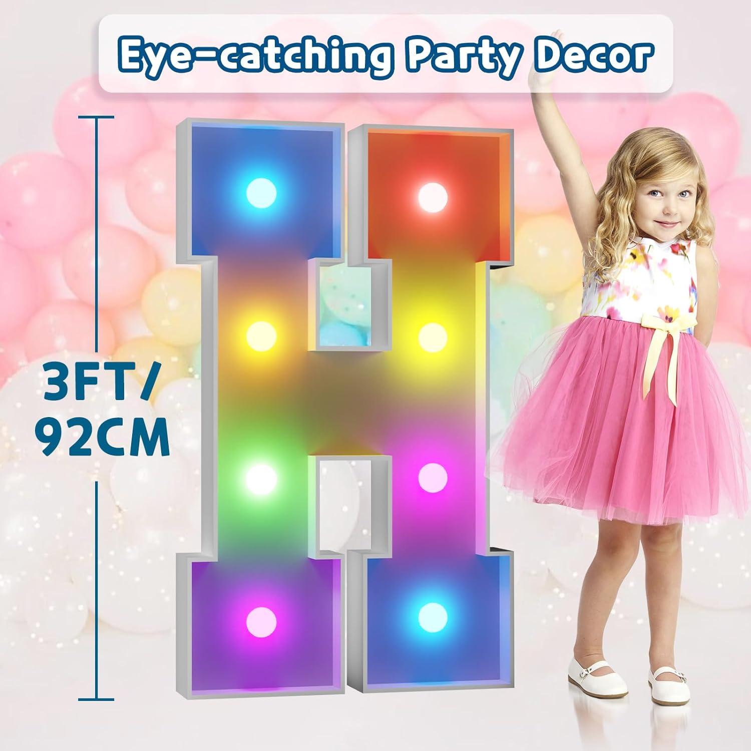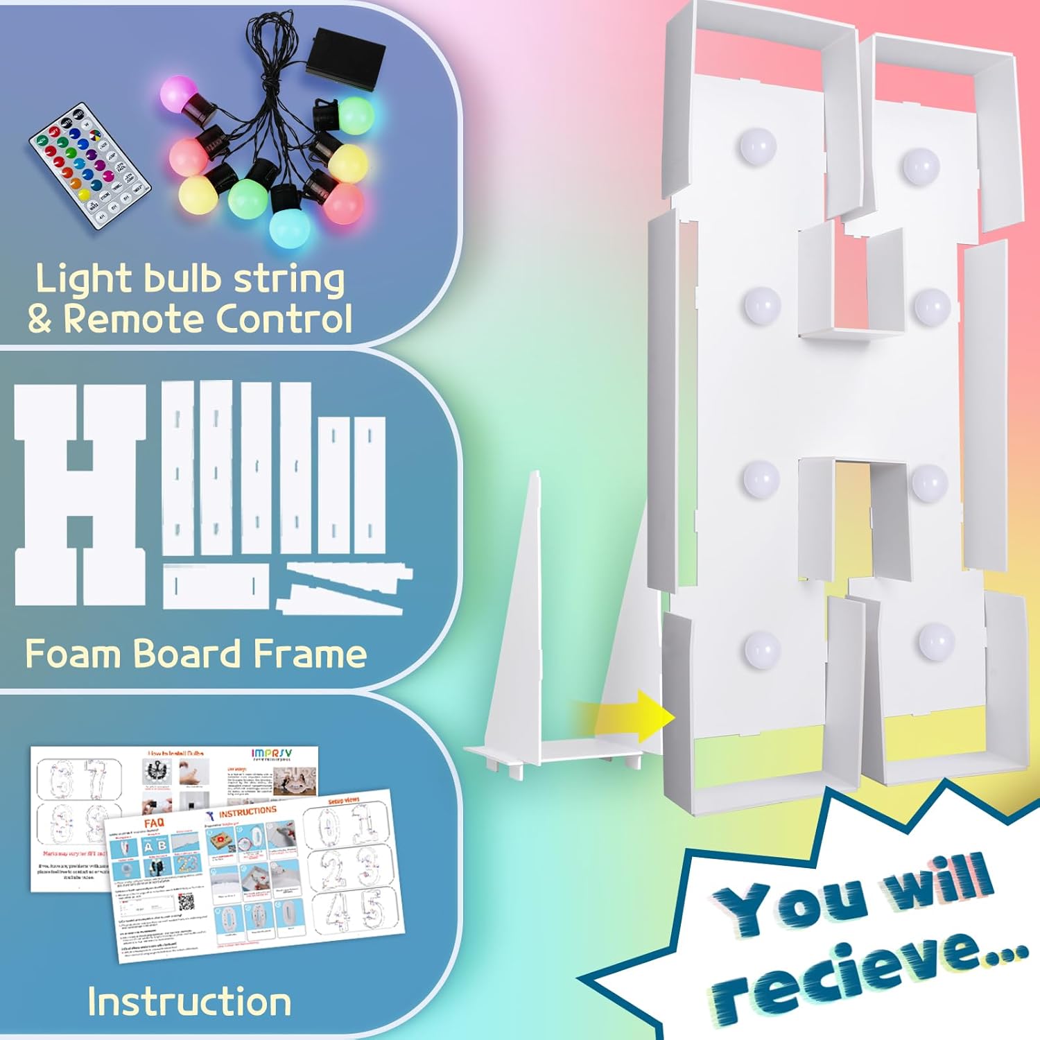 imprsv 3FT Colorful Marquee Light Up Letters G, 18 Colors Large Light up Letters Alphabet Sign with Remote, Big Marry Me Sign, Birthday Party Decorations Baby Shower Anniversary Wedding Decoration