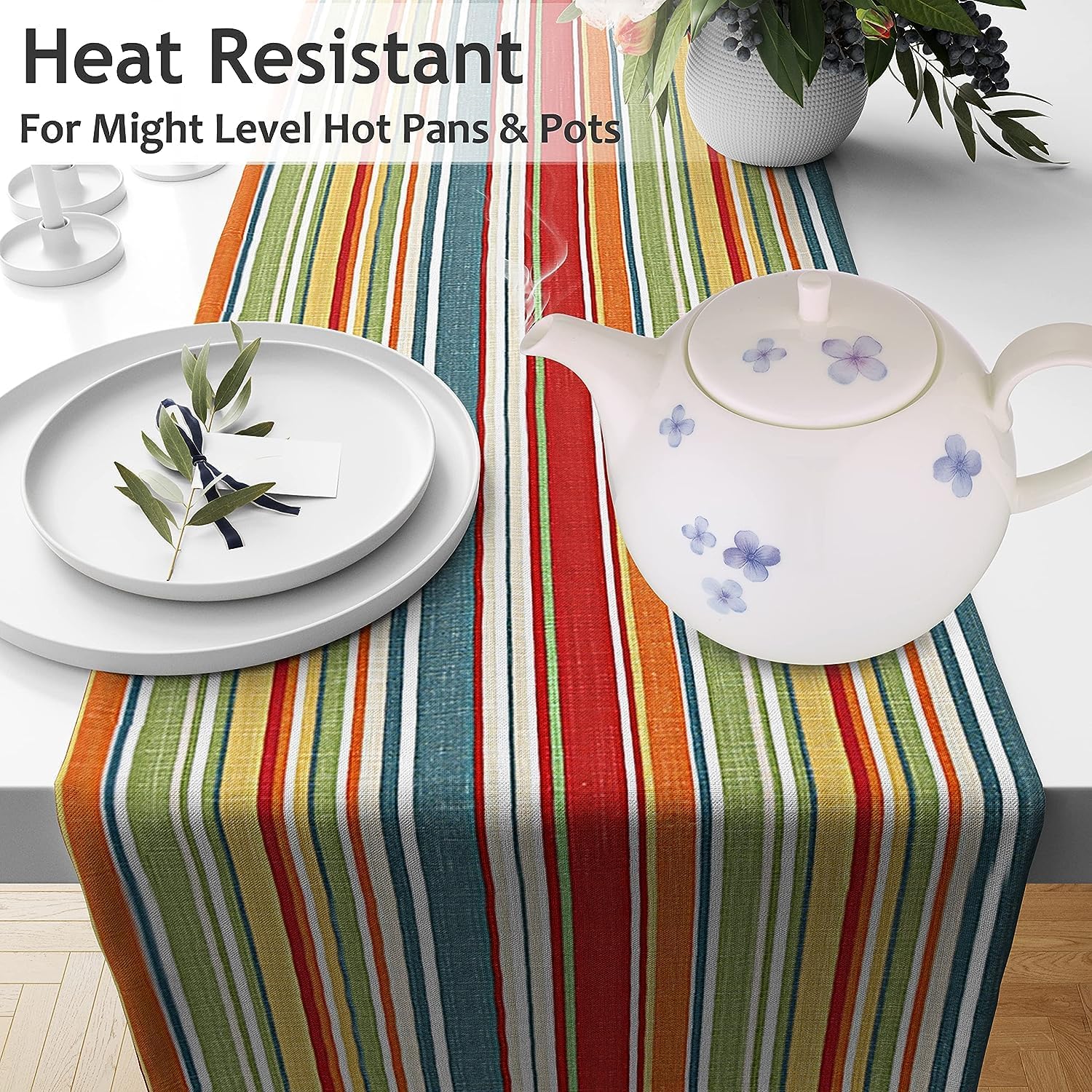 Ruvanti 100% Cotton Table Runner 36 Inches Long, Non-Slip, Stain Resistant, Washable & Reusable Table Runners Perfect for Wedding, Parties, Christmas, Holiday, in-Door use - Multi Stripe