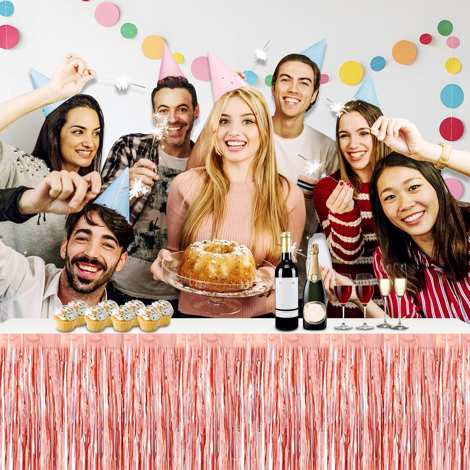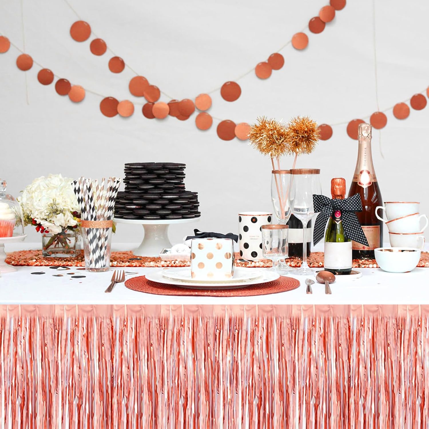 3 Pack 29x108 Inch Rose Gold Foil Fringe Table Skirts Metallic Banner for Tinsel Streamer Garland Backdrop for Parade Floats Wedding Thanksgiving Birthday Christmas Halloween Party Decoration