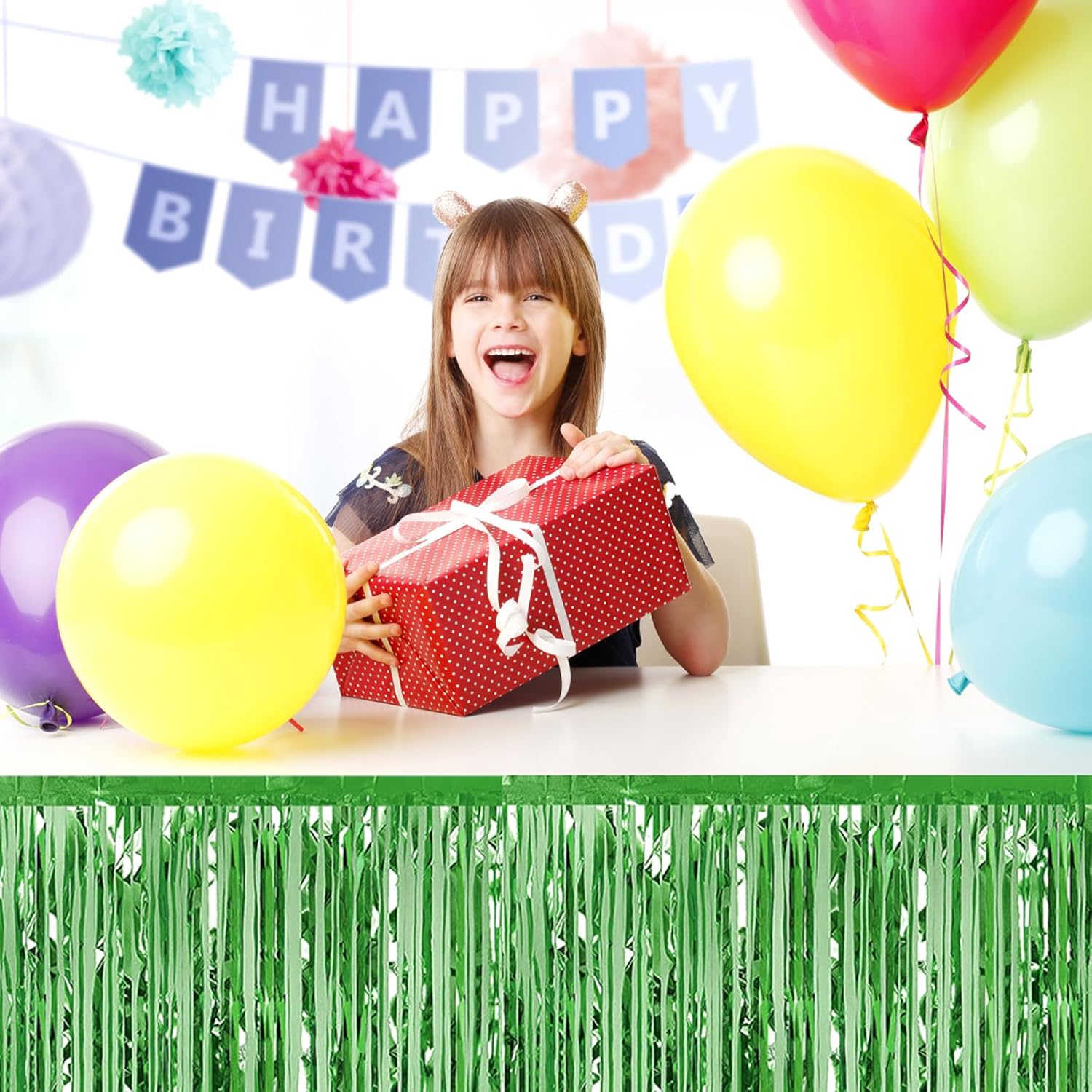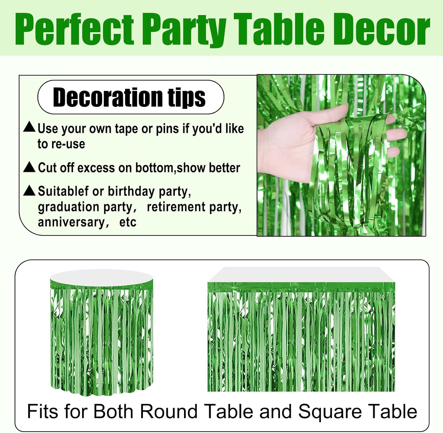 3 Pack 29x108 Inch Light Green Foil Fringe Table Skirts Metallic Banner for Tinsel Streamer Garland Backdrop for Parade Floats Wedding Thanksgiving Birthday Christmas Halloween Party Decoration