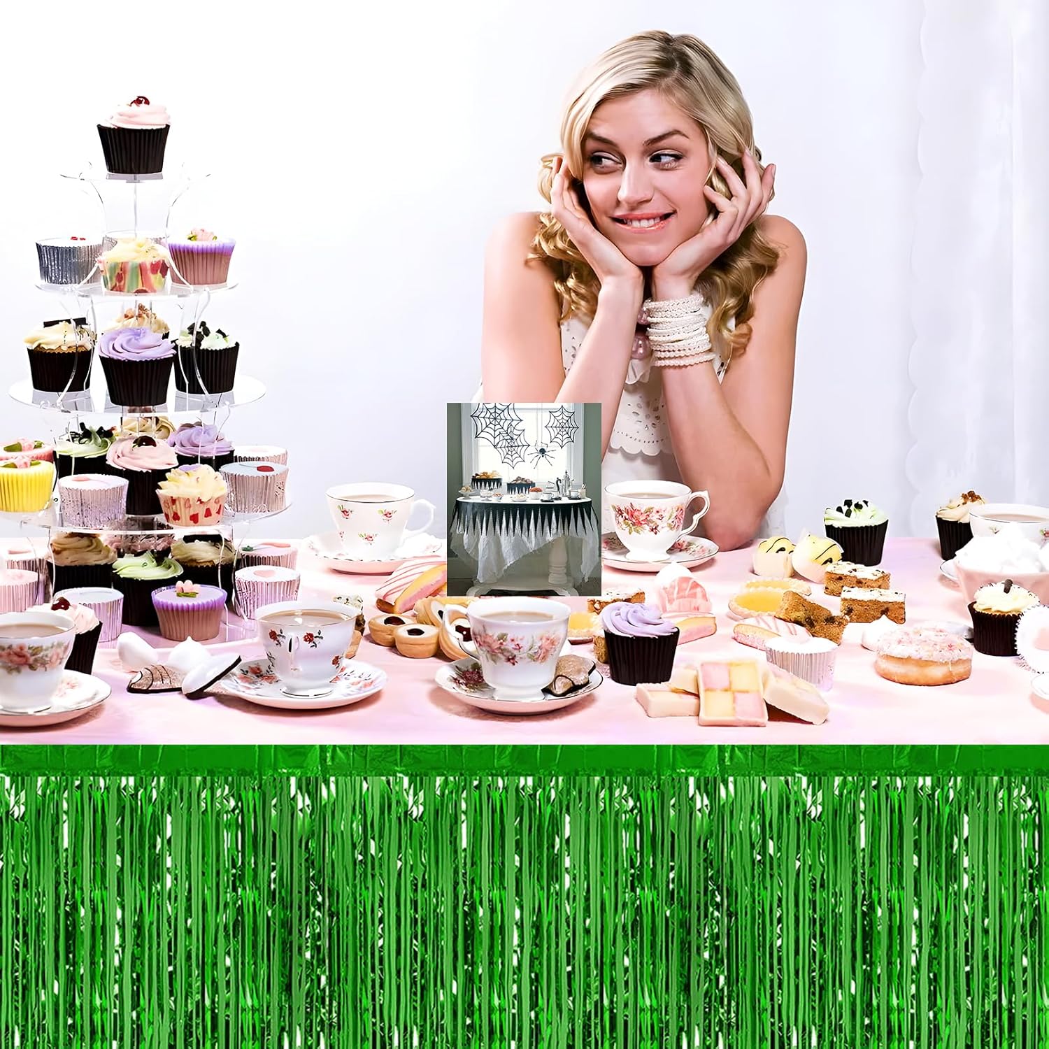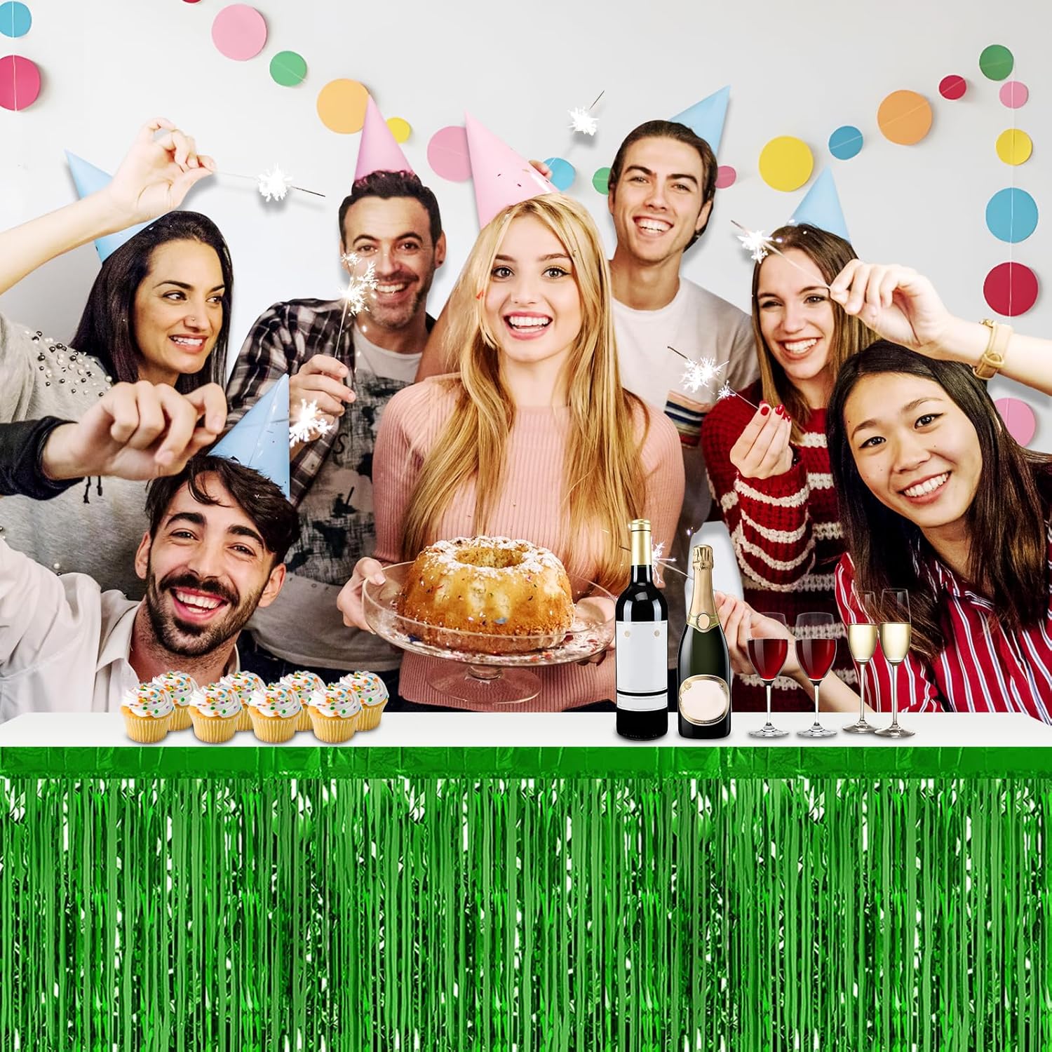 - Specifications and dimensions:3 Packs metallic foil tassel table skirt 29x108 inches, which is enough to decorate your party, provide you with excellent Convenient installation: the table skirt is equipped with self-adhesive tape. Just tear off the tape and paste it. The installation is convenient and quick. It can be pasted on the edge of your round table and square table. It can be easily cut into any siz.