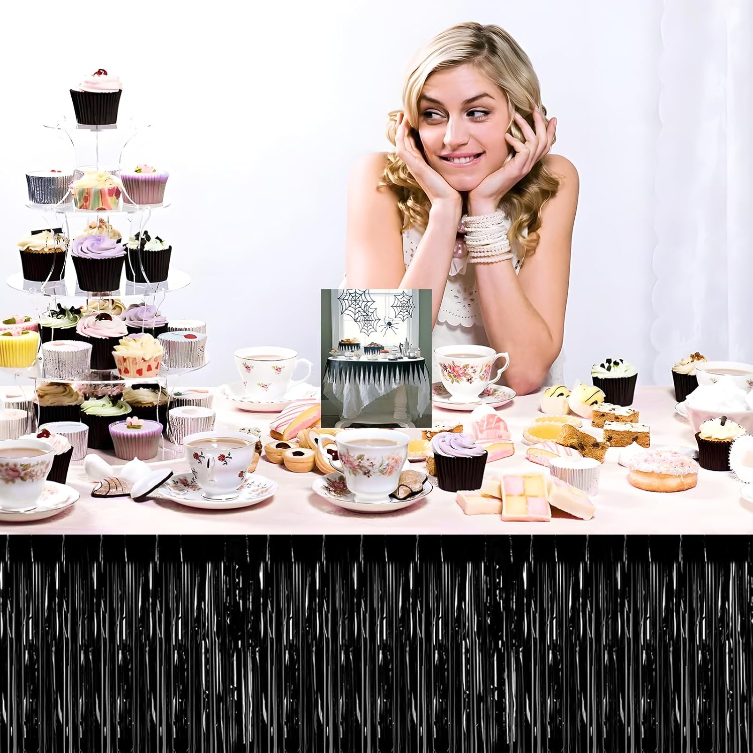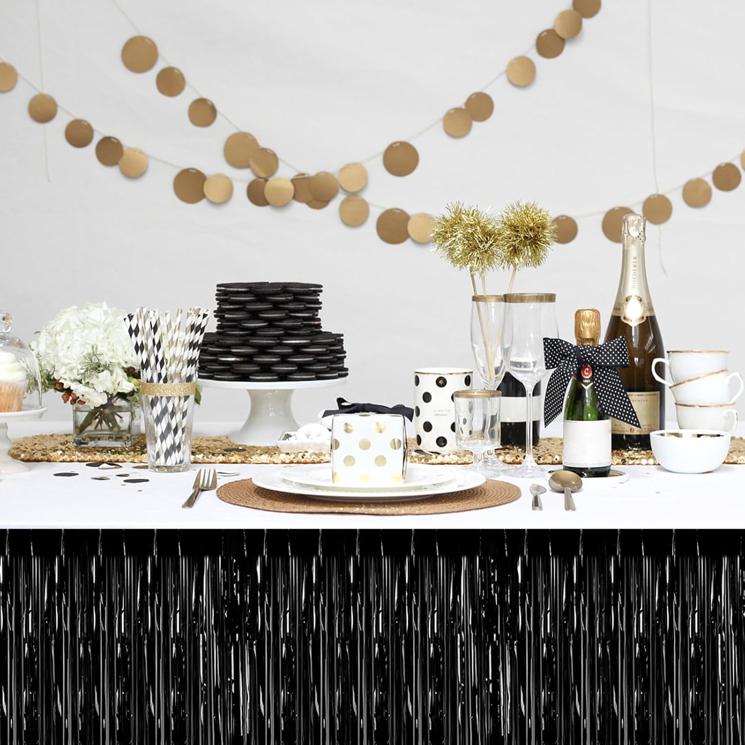 3 Pack 29x108 Inch Black Foil Fringe Table Skirts Metallic Banner for Tinsel Streamer Garland Backdrop for Parade Floats Wedding Thanksgiving Birthday Christmas Halloween Party Decoration