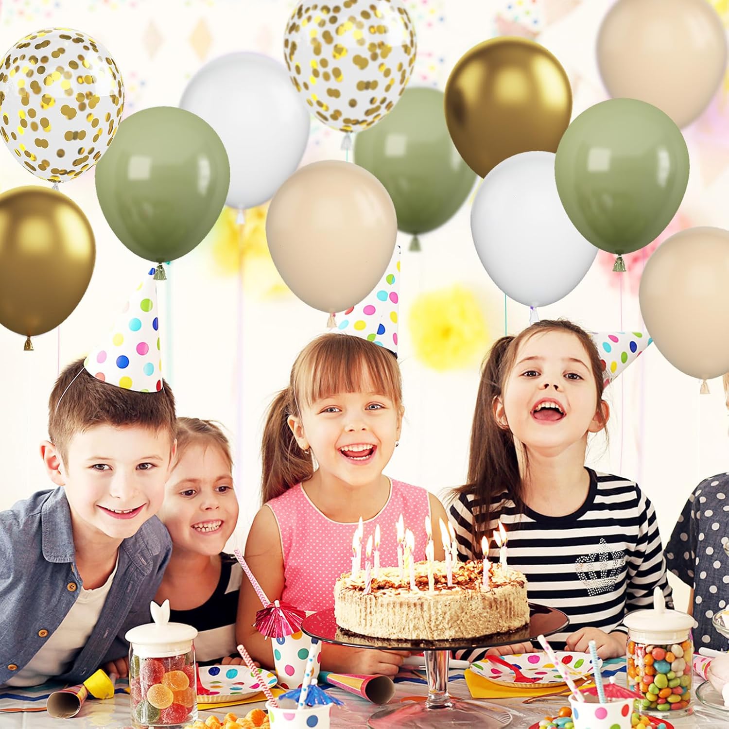 - Package Included : Our sage green balloons set includes 60 pcs 12 inch latex balloons. 23 pcs sage green balloons, 22 pcs white balloons, 6 pcs gold balloons, 4 pcs apricot+white double balloons, 5 pcs gold confetti balloons and 2 pcs white ribbons