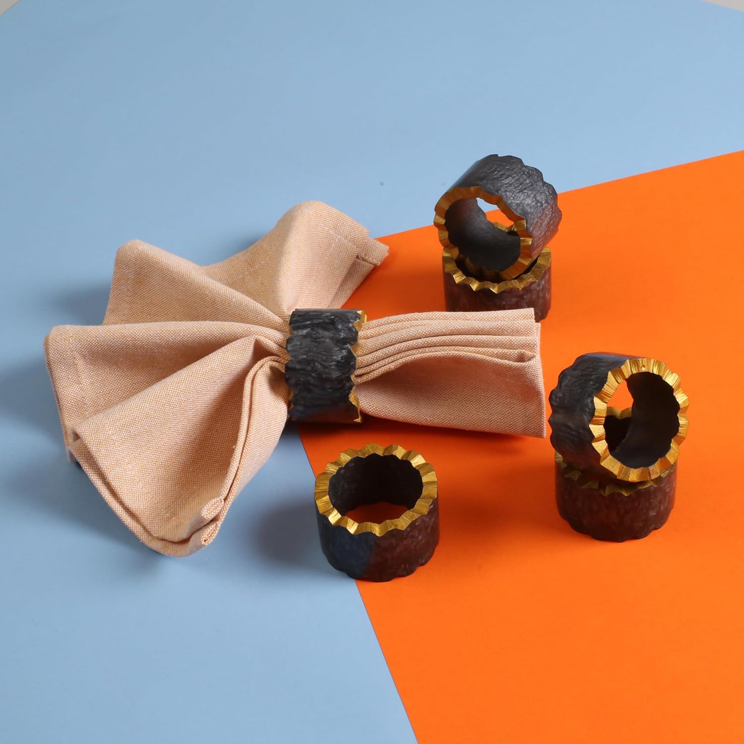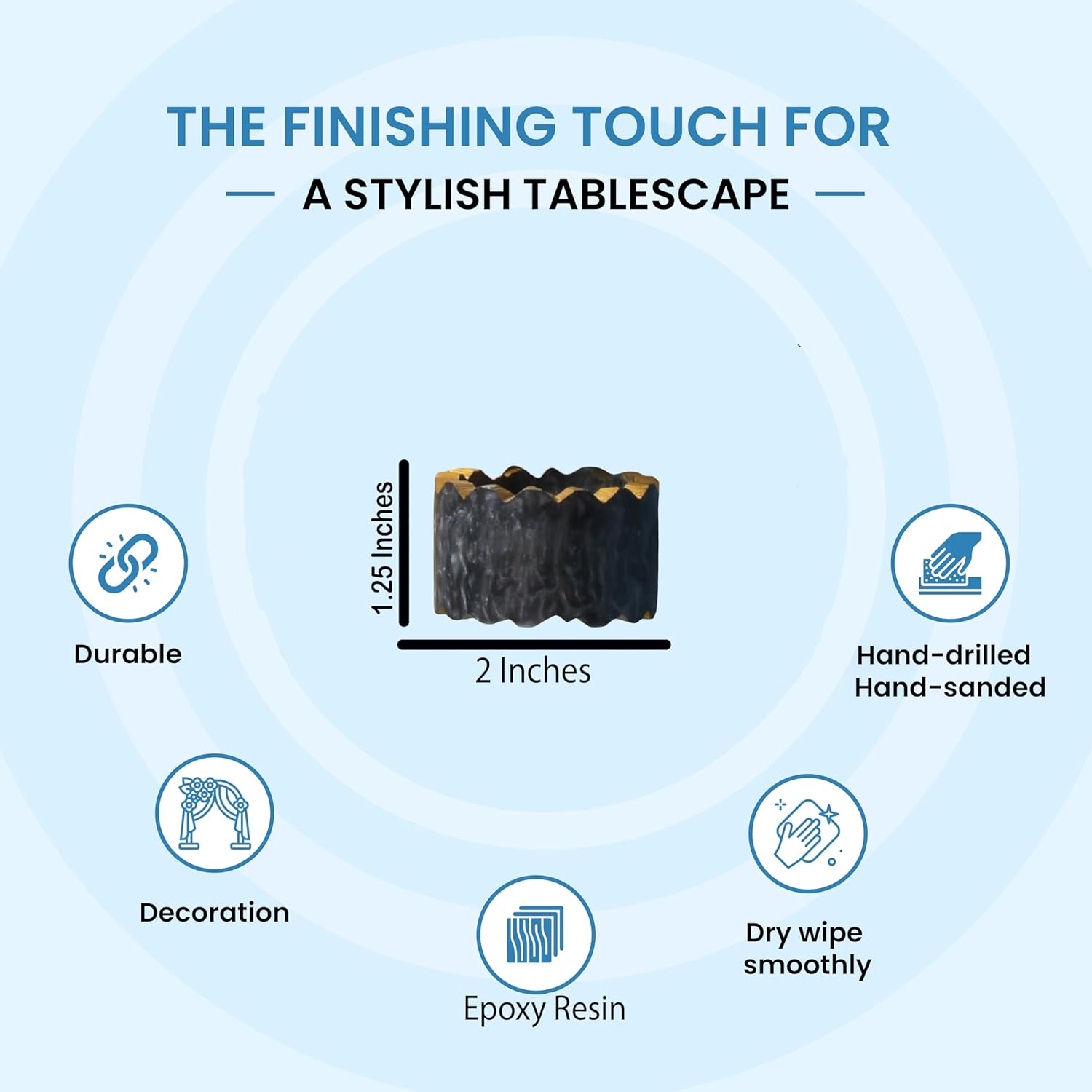 Epoxy Resin Napkin Holders for Cloth Napkins - 6 Pcs Elegant Napkin Holders for Dining Table Decor, Parties, Weddings & Holidays - Modern Tabletop Accessory (Black Gold) - CLEENTABLE