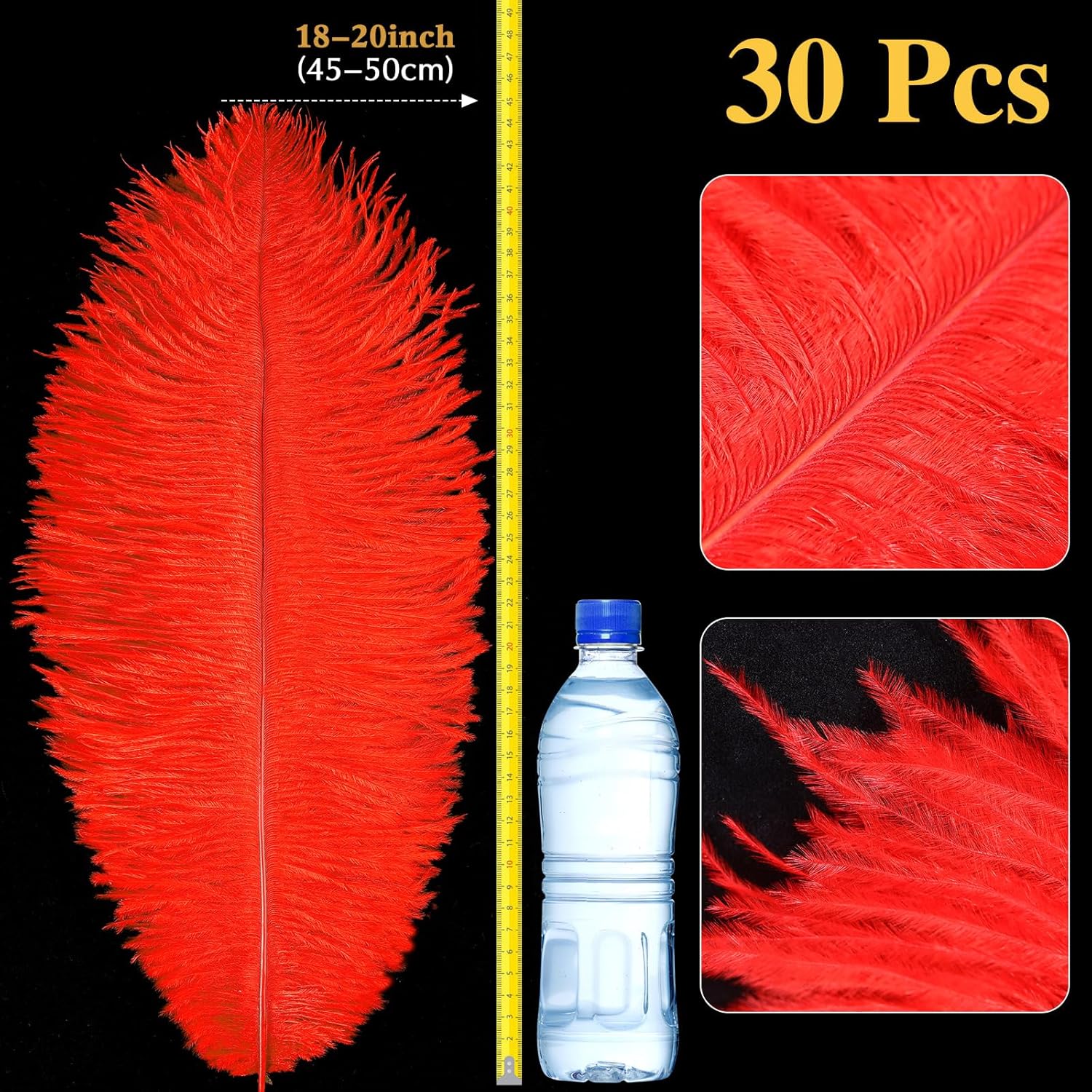- Ideal Package to Meet Your Needs: you will receive 30 pieces of red ostrich feathers, measuring about 18-20 inches/ 45-50 cm, adequate in quantity can satisfy your diverse decoration demands; You can also share them with your friends and family to experience the beautiful atmosphere