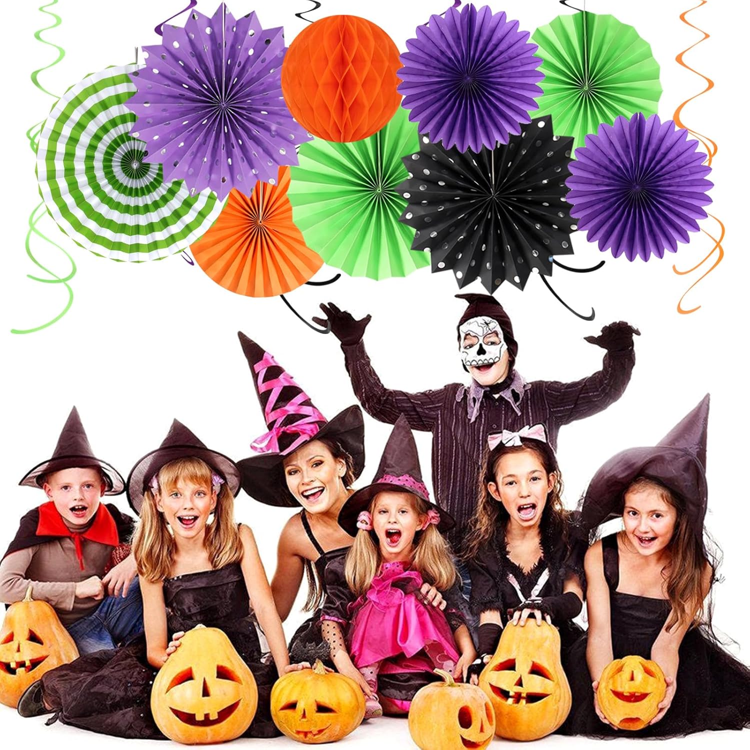 Orange Black Purple Green Party-Decorations - 33Pcs Banner,Halloween Streamers Tassel Garland,Tissue Pom Poms Honeycomb,Paper Lantern Fan,Birthday Wedding Baby Bridal Shower Decor Supplies Hugtmr