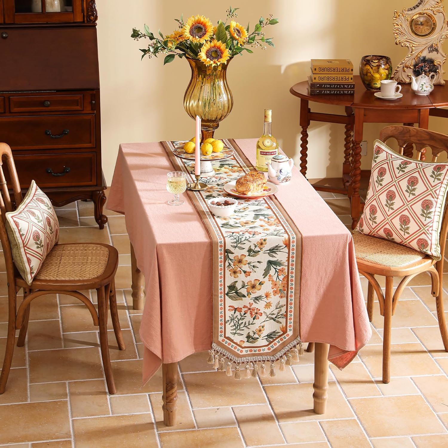 Vintage Linen Table Runner,Floral Table Runners 71 Inches Long,Soft and Luxury Tablerunner.Decoration Tabletop for Kitchen,Dining,Tea Party,Home,Christmas,12"*71"