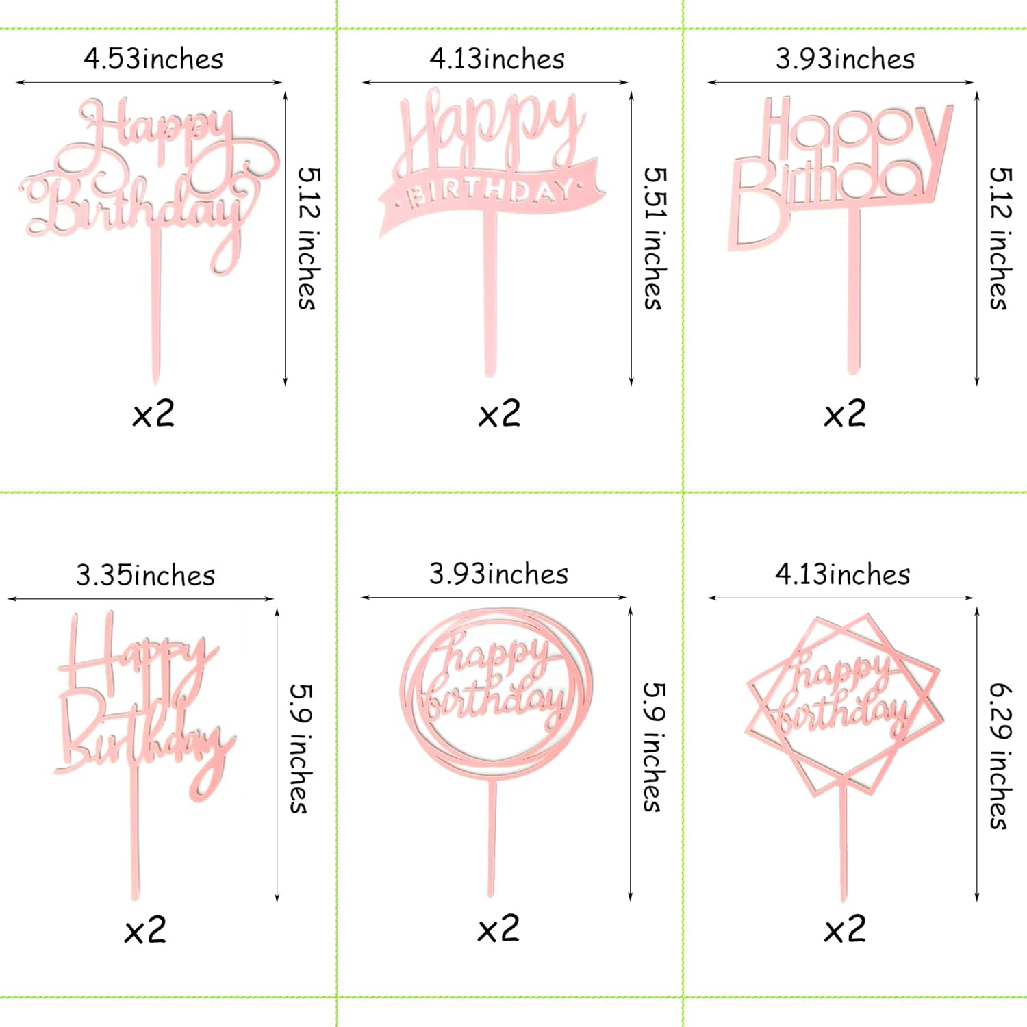 - Size: The Happy birthday cake toppers’ height is approx.5.1 - 6.3 inches, the width is approx. 3.4 - 4.5 inches. Ideal for 6-10” cakes.