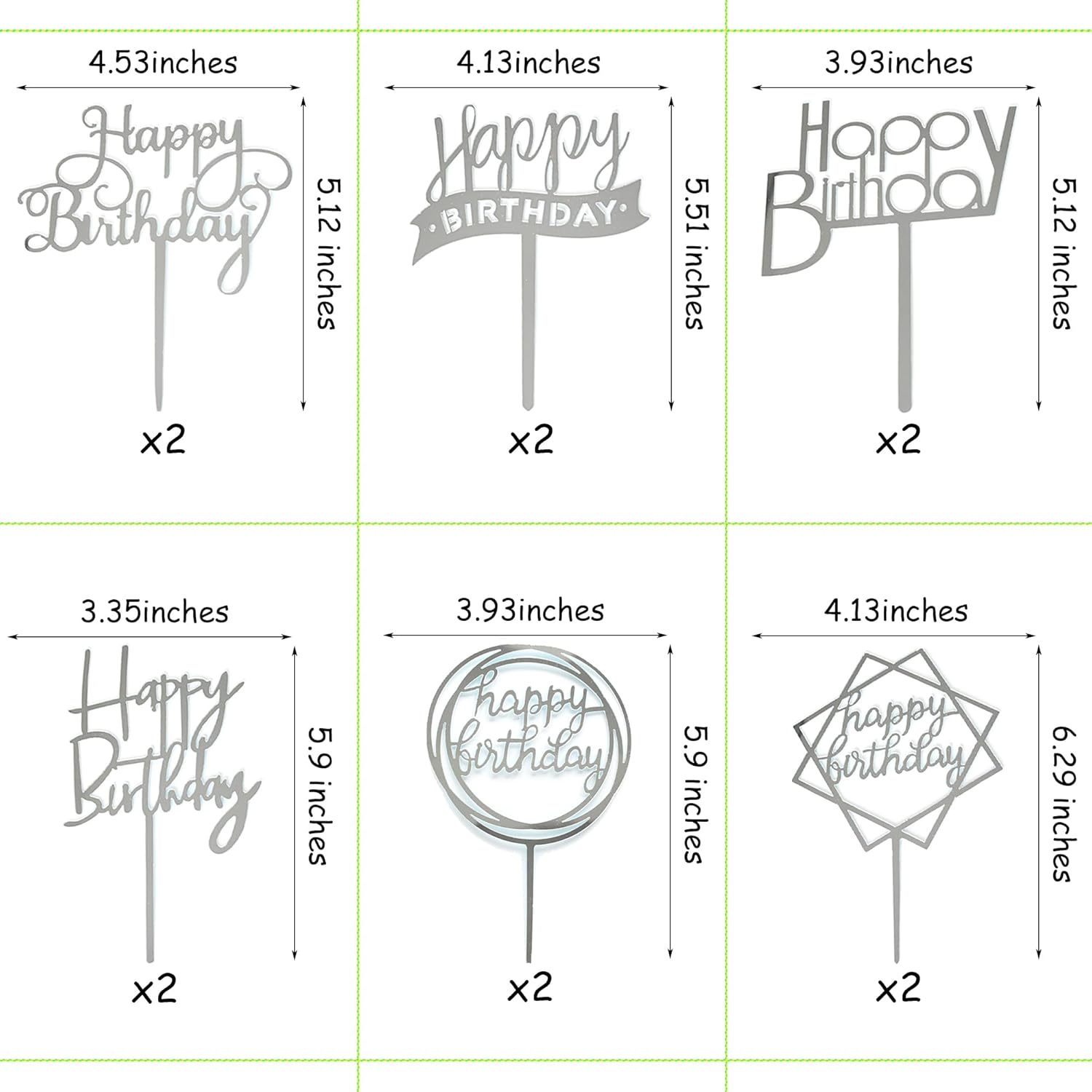 - Bulk Supply: Totally 12 pack silver acrylic birthday cake topper, large amount for family use.