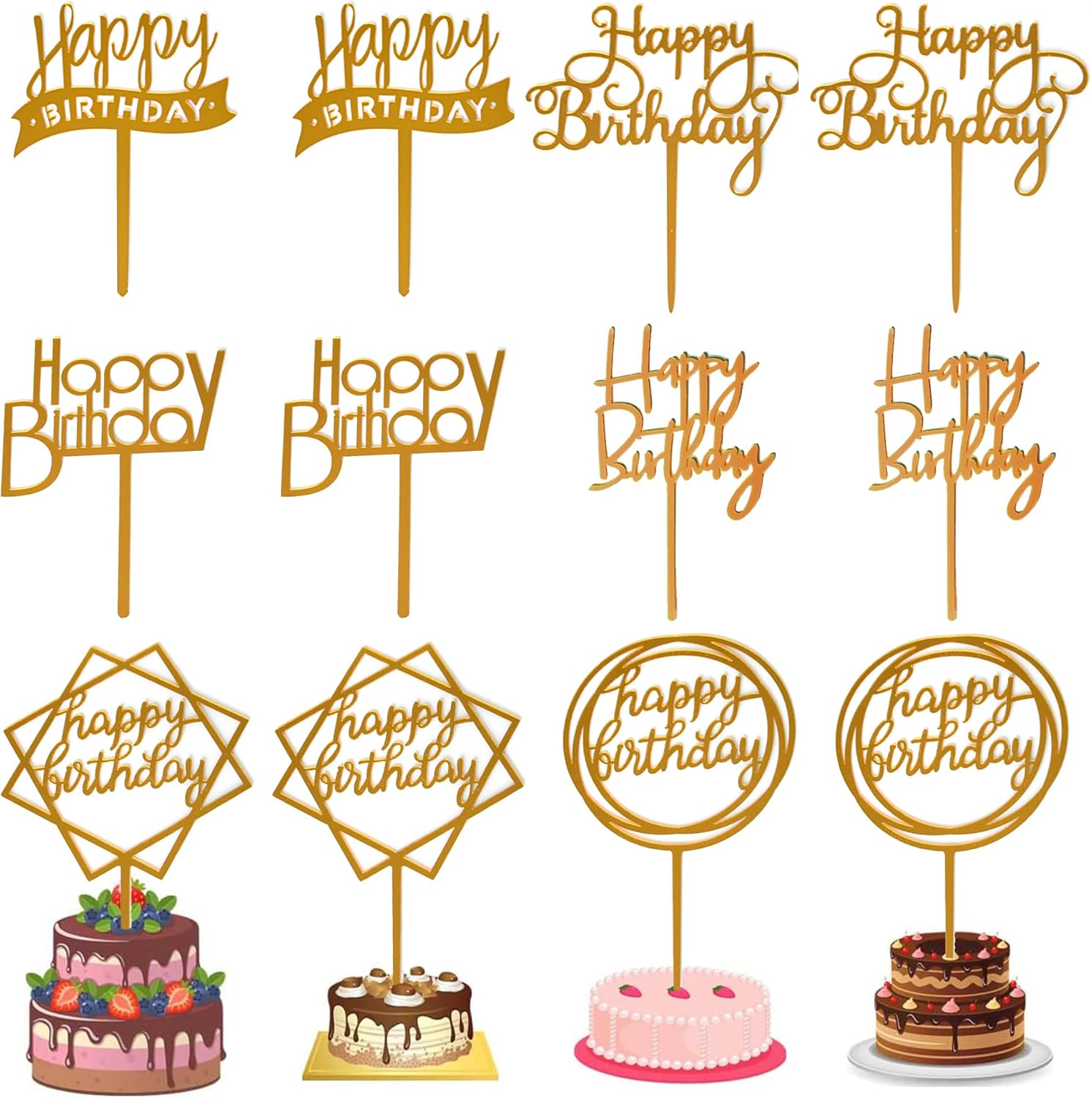 - Bulk Supply: Totally 12 pack gold acrylic birthday cake topper, large amount for family use.