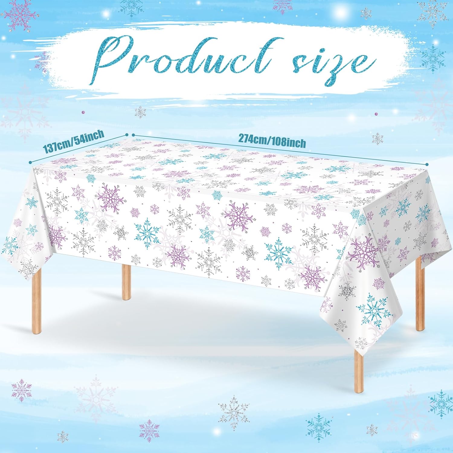 - Large size:these purple and blue baby shower snowflake Christmas party tablecloth measures approx. 137x274cm/54X108 inch, which fits for 8 feet long tables that can accommodate 8-10 people, Itโs large enough for your to hold a winter holiday and Christmas theme party with your family and friends to share happiness