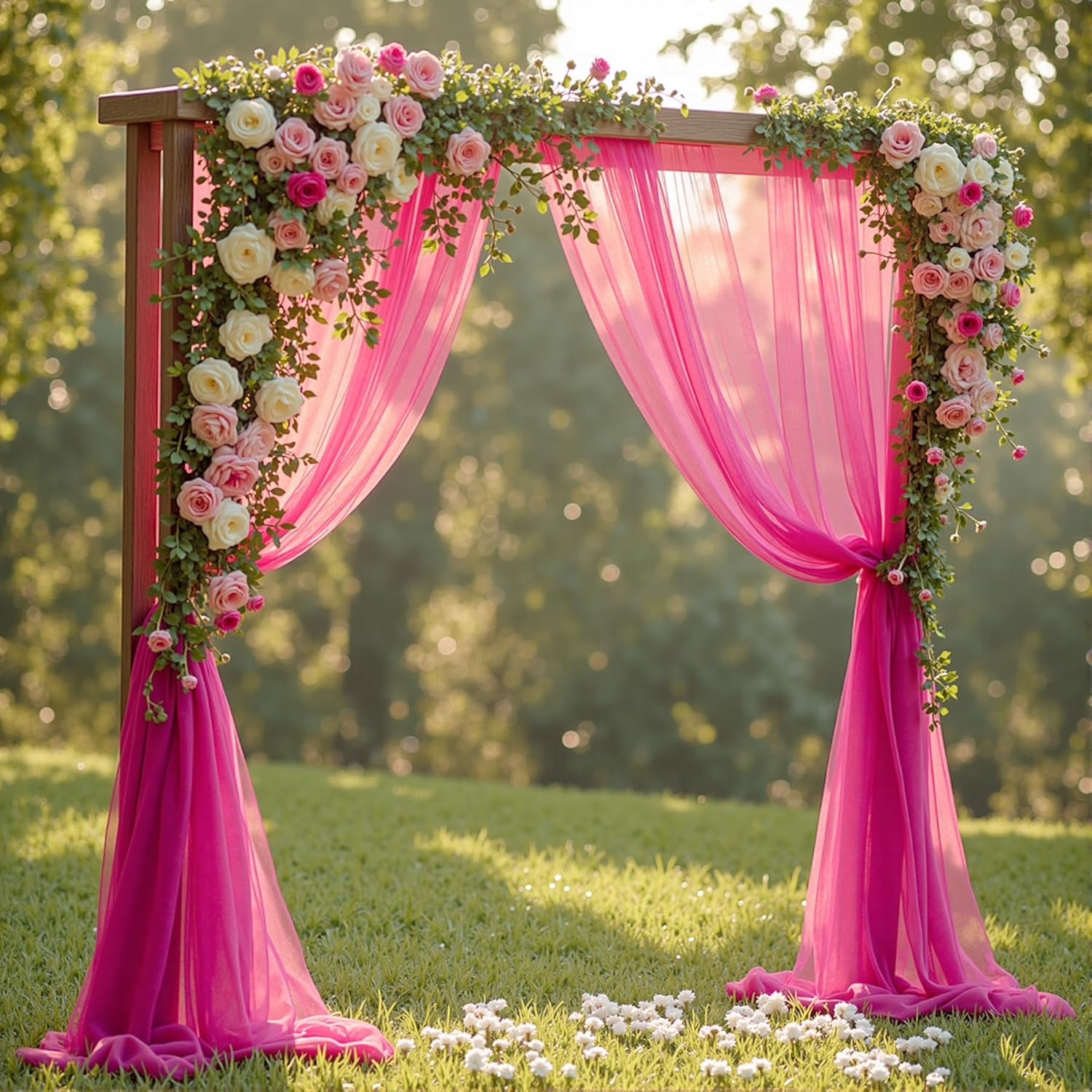 - What You Get: Including 1 panel hot pink chiffon wedding arch drapes, each panel is 29" wide by 6 Yards (216 inches) long. Voile sheer chiffon draping fabric are good choice to decorate your wedding arch arbor.