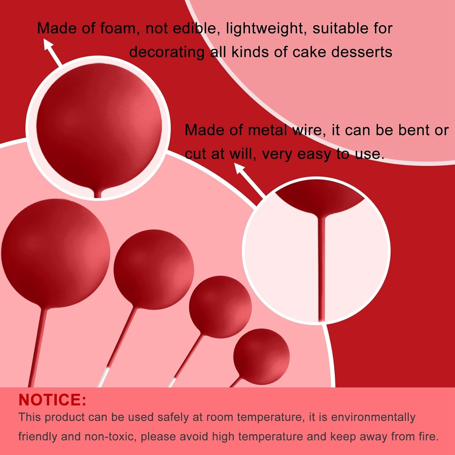 - Premium Material: These Ball Cupcake Toppers are made of foam and wire. Safe to decorate food at room temperature, such as cake or dessert decorating use, or cupcakes, fruits, cheese and any dish and appetizer you want to decorate.