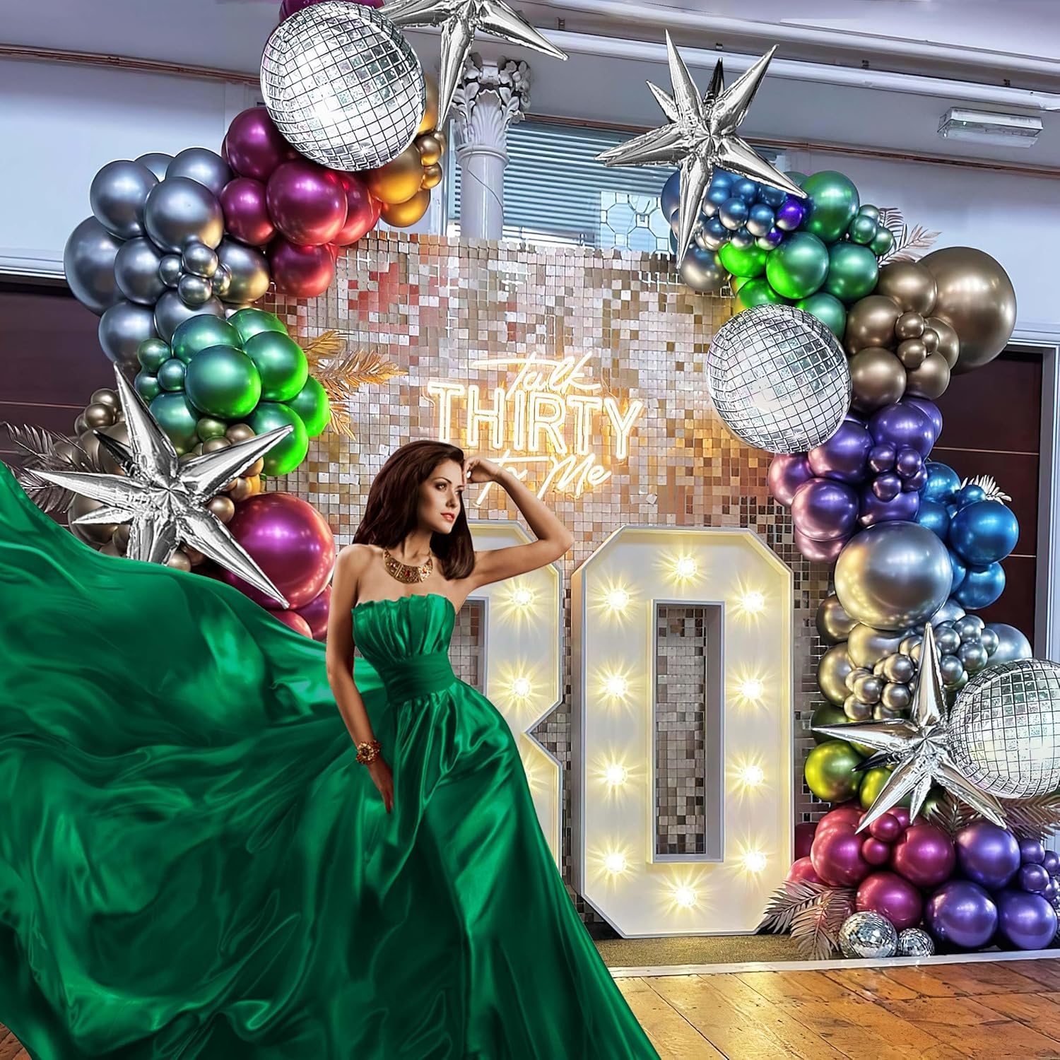 Metallic Balloon garland kit 150PCS Hot Pink Purple Green Blue Silver Gold Latex star 80s 90s Disco ball Party Balloons for Birthday graduations class of kpop fans prom last bachelorette Decoration