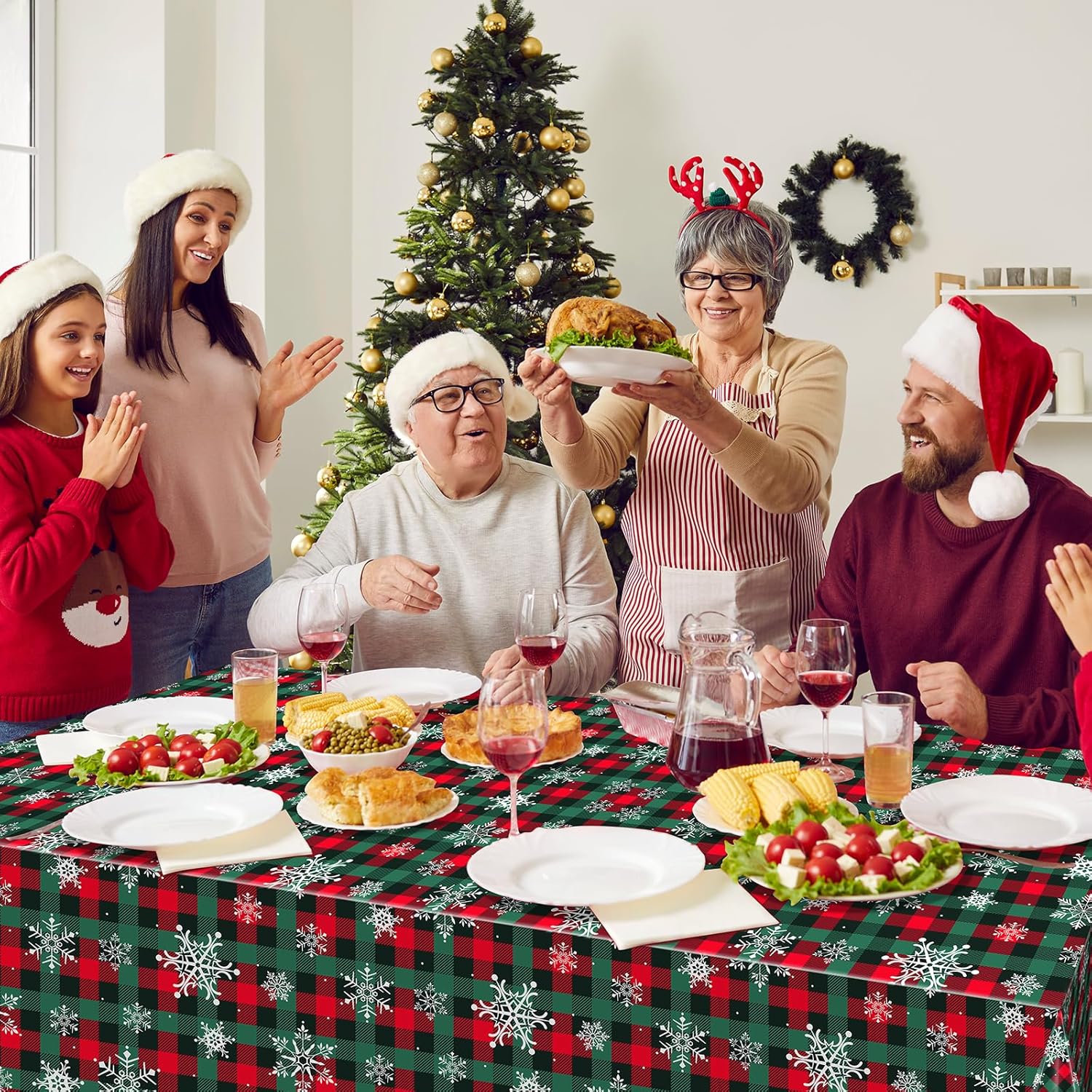 - Large size:these Merry Christmas snowflake plaid party tablecloth measures approx. 137x274cm/54X108 inch, which fits for 8 feet long tables that can accommodate 8-10 people, Itโs large enough for your to hold a winter holiday and Christmas theme party with your family and friends to share happiness