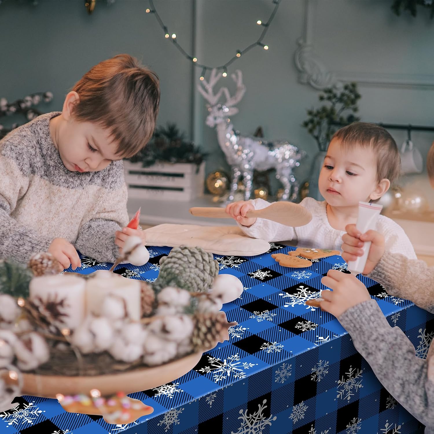 - Easy to clean: the snowflake Christmas disposable table cover with blue and black plaid background has a smooth surface, you just need to wipe the table cover to clean it, then store it for next time or just toss it away,itโs great value for saving your time for cleaning after parties or decorate during the parties