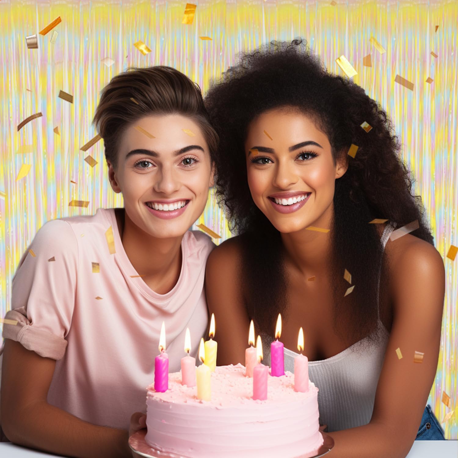 3 Pack Foil Fringe Backdrop - PastelRainbow Shiny Tinsel Curtains for Party Decoration/Photo Booth Props - 3.3x8.2 FT Metallic Foil Backdrop for Birthday, Wedding, Graduation, Christmas.