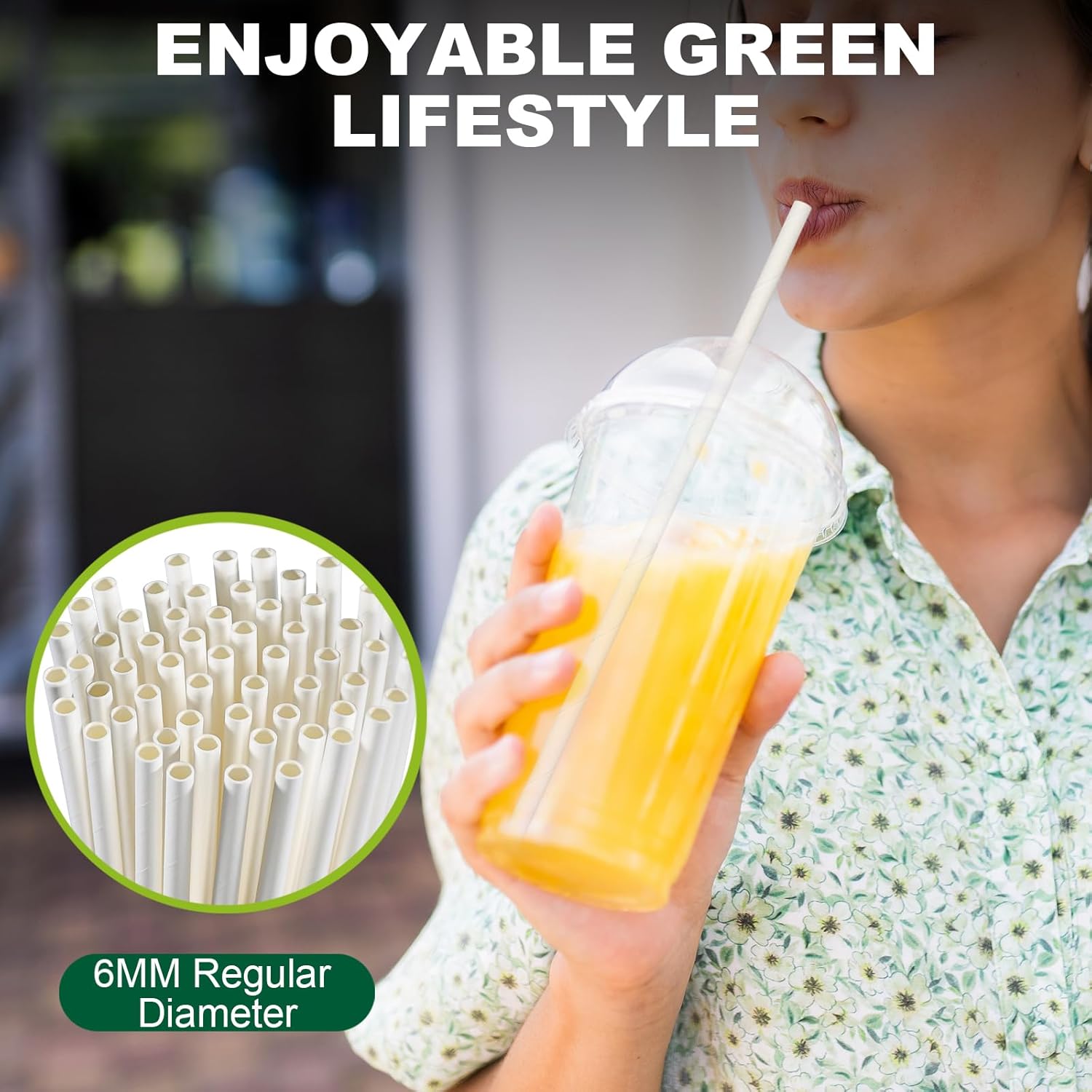 10.25" x 0.24‘ Long Disposable Paper Drinking Straws Bulk - Unwrapped, Dye-free White [600 Counts]