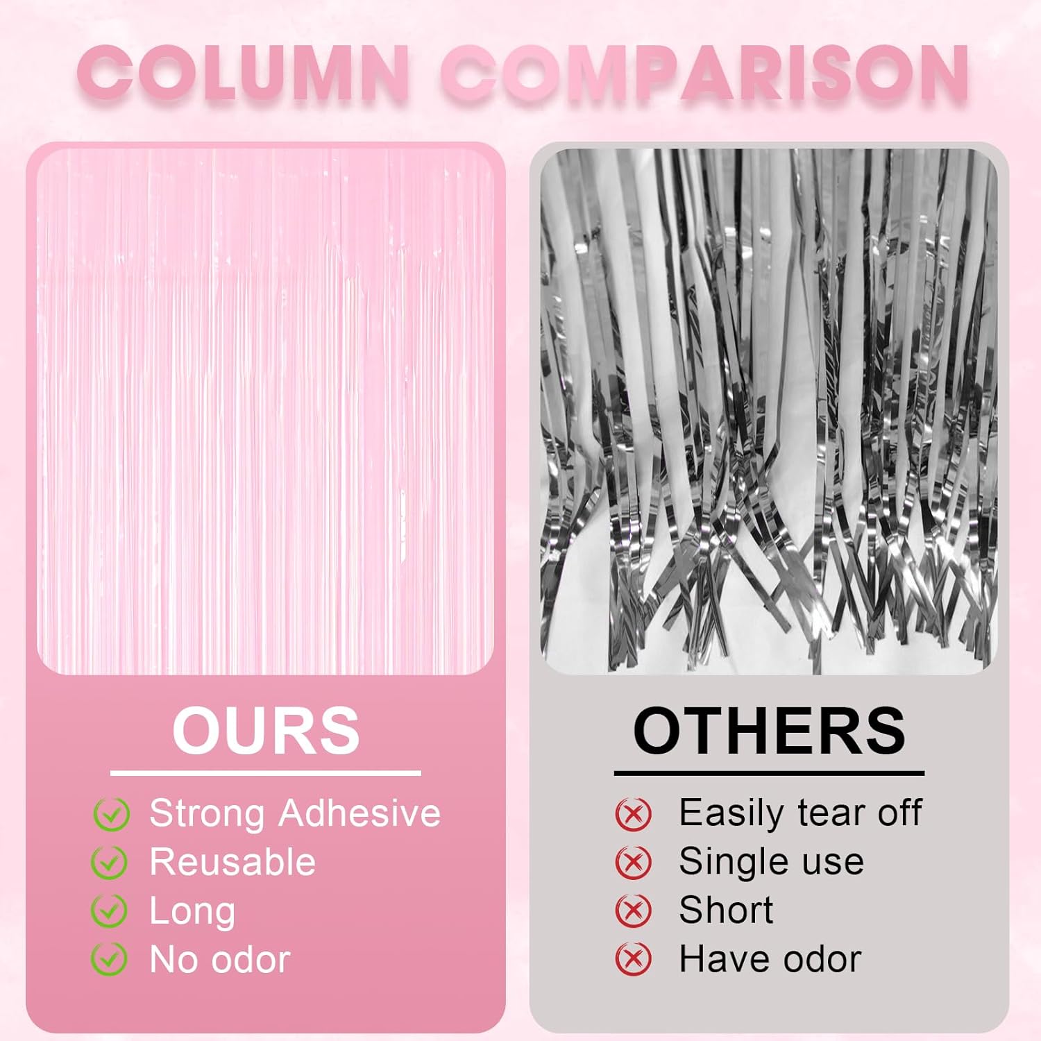- Premium Material: This Pasel Pink foil curtain backdrop is made of stable tinsel, non-fading, stay shiny and reusable. Unfold it and then enjoy your glittering party