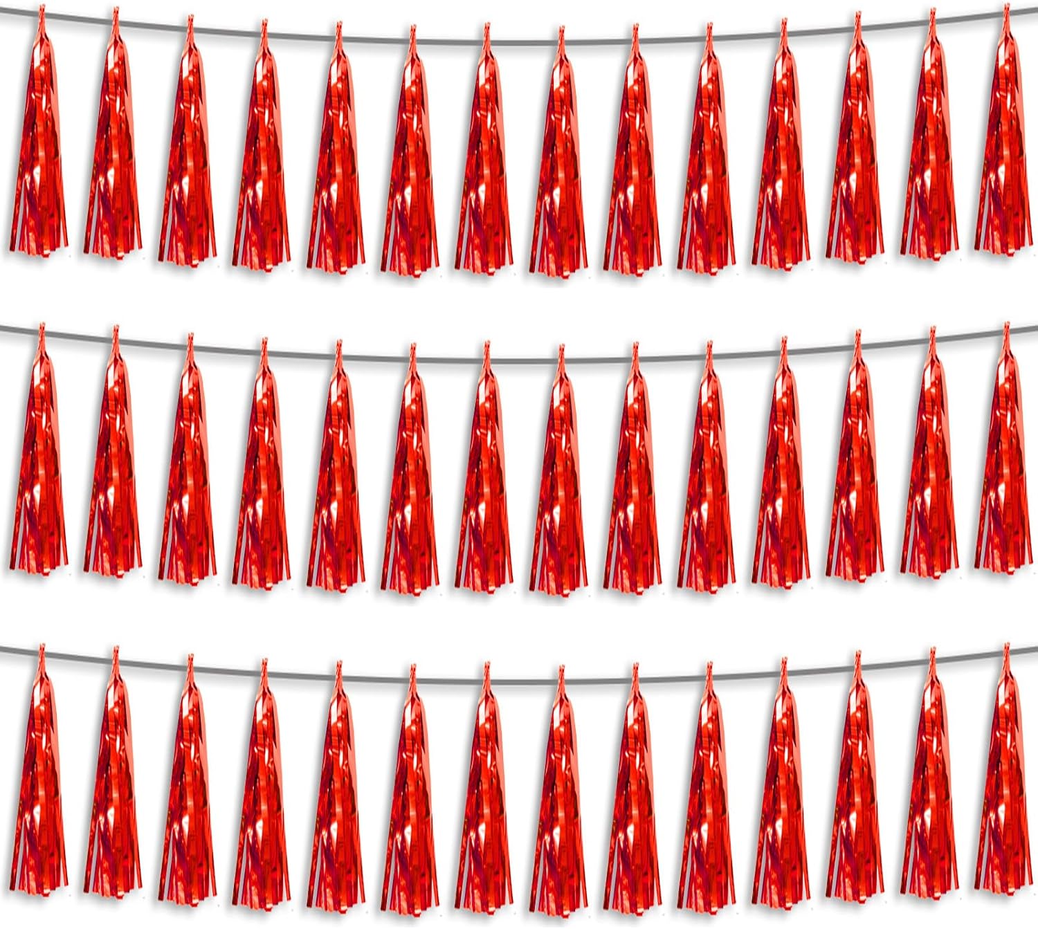 3P Red Foil Fringe Metallic Tassel Streamers Banner Tassel Garland for Parade Floats, Bachelorette, Wedding, Birthday, Halloween, Christmas, Bridal/Baby Shower Party Decorations