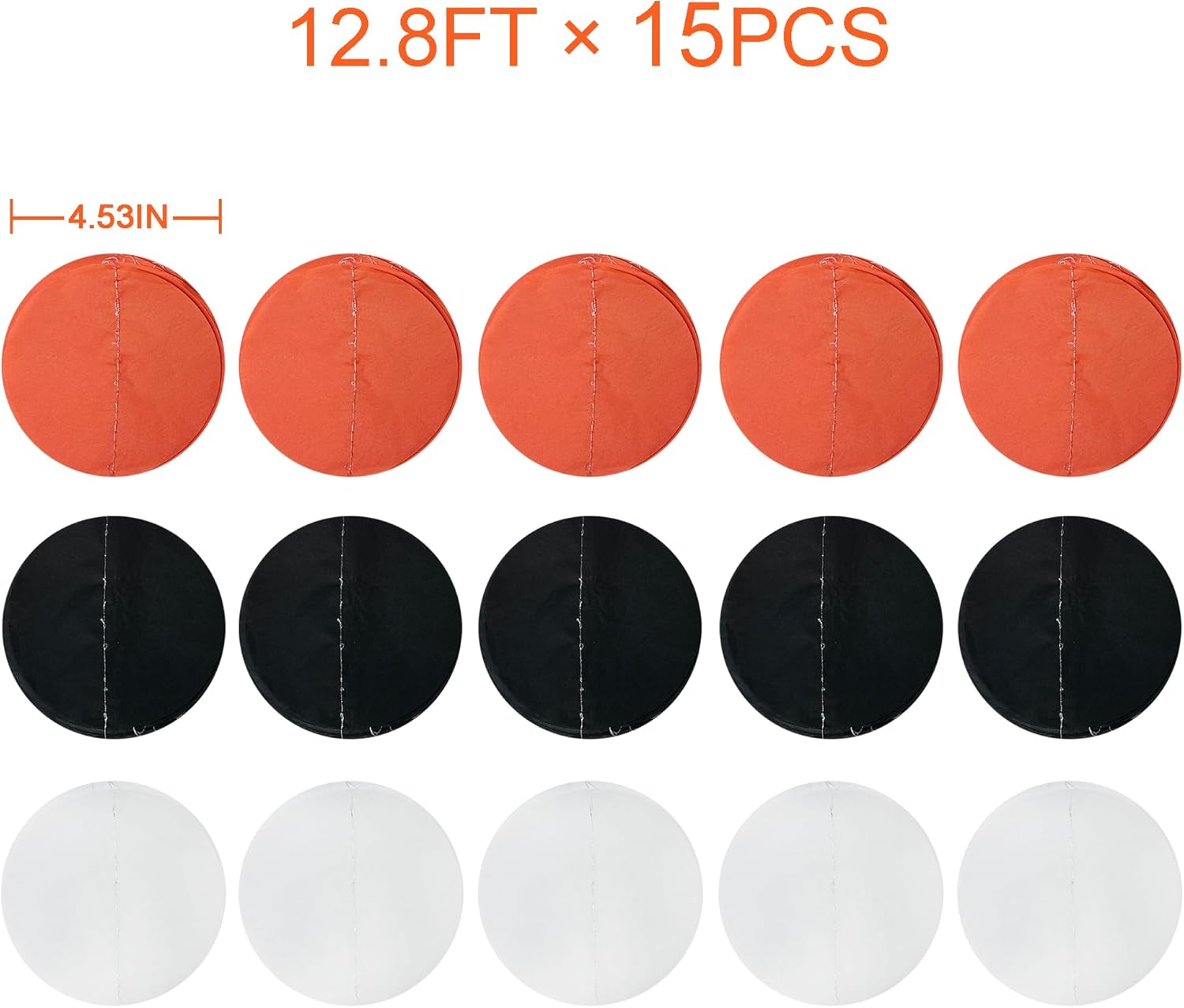 - ⚫PACKAGE CONTAINS- 15 packs of orange black and white circle dot party streamer banner,each string is 12.8 feet/3.9 meters with 30 pcs polka dots, Total is 58.5 meters/192 feet.