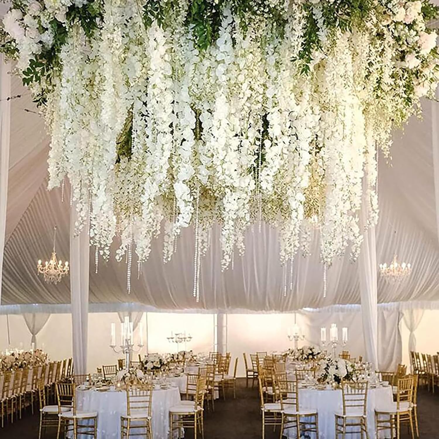 - 【Package Included】24 pieces of silk white green wisteria hanging flowers, each length 45.27 inches. Every artificial wisteria garland has 3 branches and 6 leaves, the wisteria flower petal length is 23.62 inches. (Note: There is a little green in the middle of the petals, and there may be some color differences in different lights)