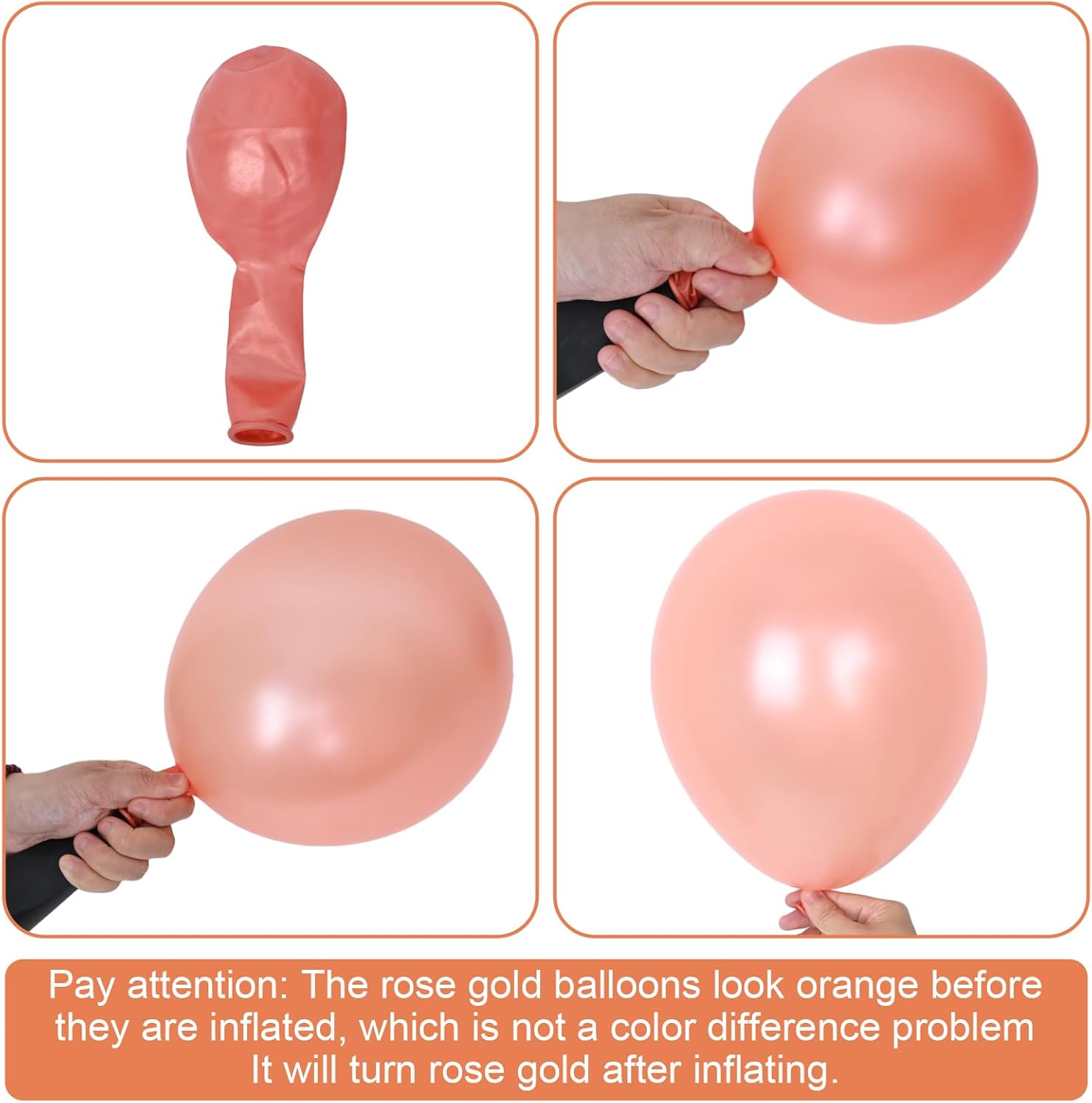 - Rose Gold Balloon Sets: 6 x metal rose gold balloons, 6 x preal rose gold balloons, 6 x pearl champagne gold balloons, 6 x pearl white balloons, 6 x clear balloons with rosegold confetti. That's a magnificent total of 30 pieces to unleash your creativity! Elevate your celebrations with our exquisite rose gold balloon sets!