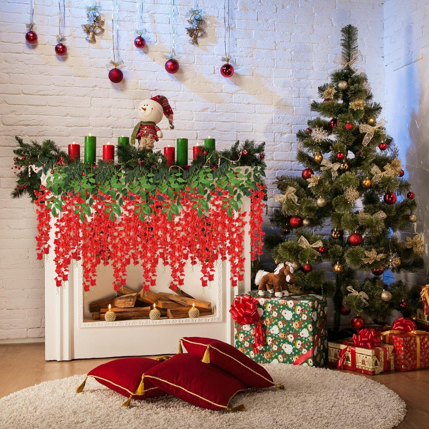 - 【Cycle Used】The red artificial wisteria garland is made of silk, the stem is made of metal wire and plastic, and it can be easily bent and recovered, so you can use it many times, very environmentally and cost-effective.