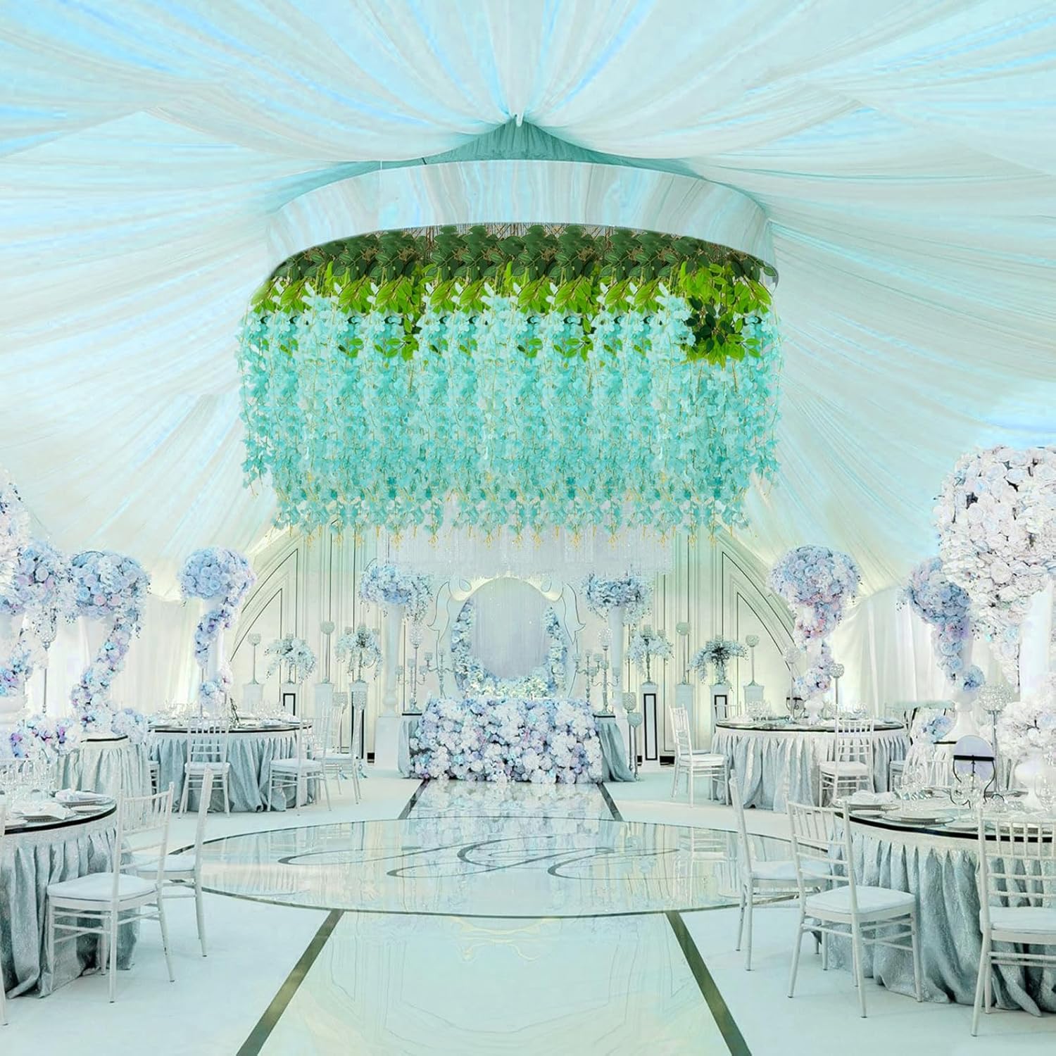 12 Pack Teal Wisteria Hanging Flowers, 3.44 Ft Fake Hanging Flowers, Artificial Wisteria Garland Vines for Wedding Room Backdrop Outdoor Patio Garden Decoration
