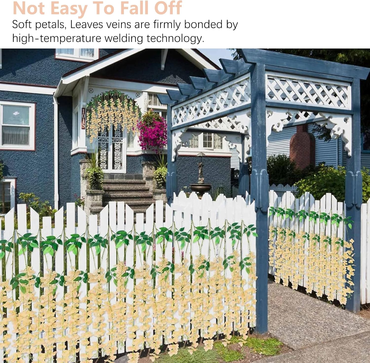 - 【Champagne Wisteria Garland】Whether you decorate beautiful champagne wisteria hanging flowers indoors or outdoors, you can achieve a magical decorative effect. Decorating the interior makes your home look full of life while decorating the exterior makes the environment more springy.