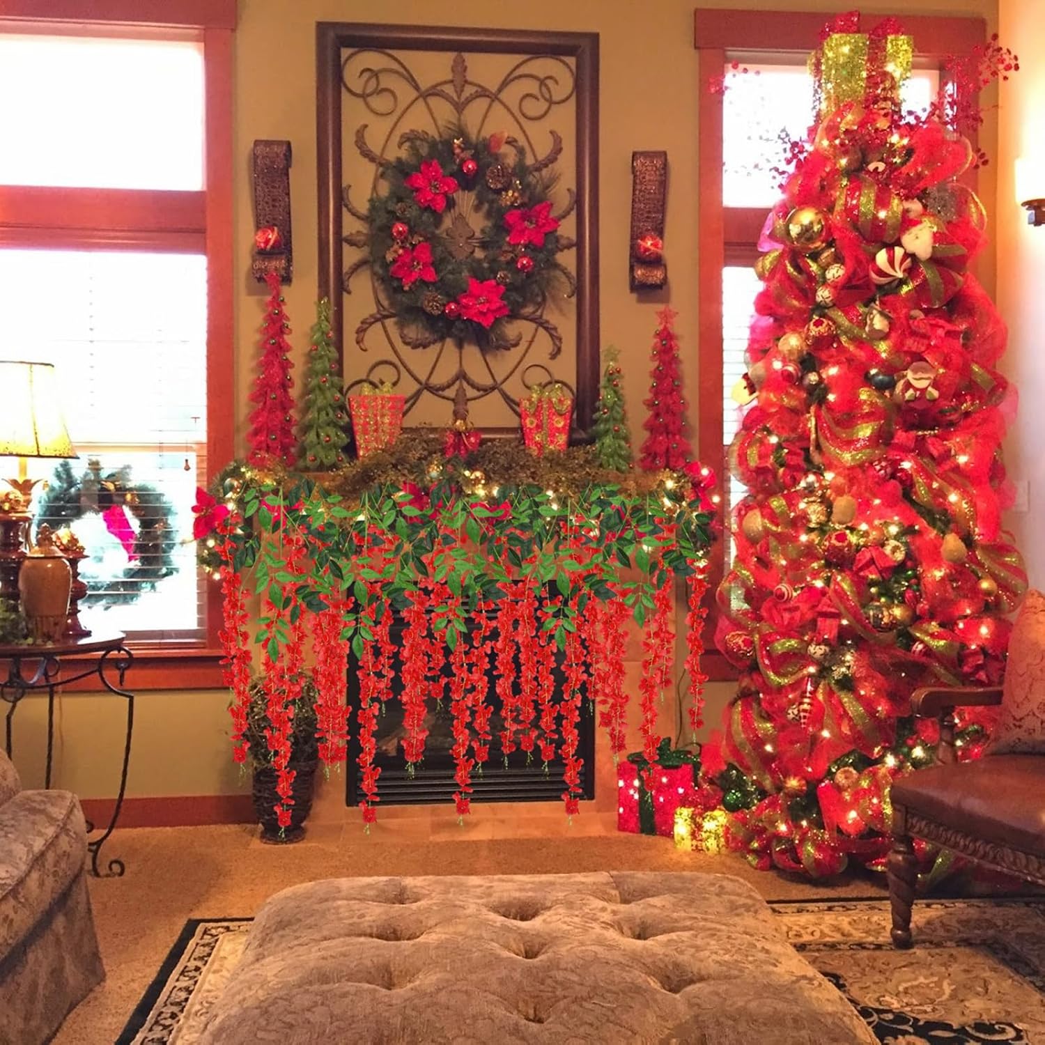 - 【Exquisite and Reliable Silk Material】This fake red flower vines are made of silk, the delicate flowers are supported by plastic rods inside, they are colorful, reliable, and do not fade easily; They are easy to wash and keep clean, and the shape is realistic, looks natural and does not fall off the rods easily.