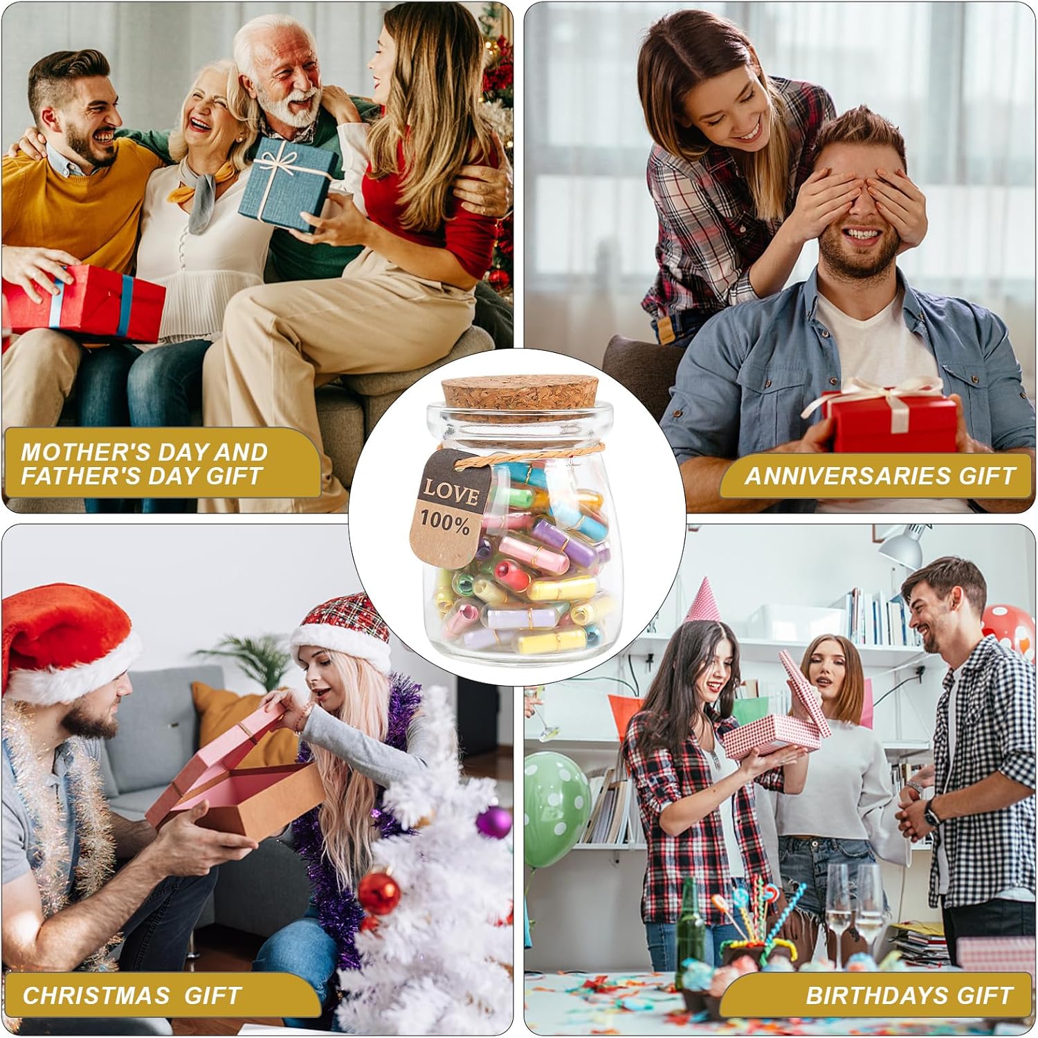 - PERFECT GIFTS:Message capsules can help you to deliver the words you can't spit out in a romantic and friendly way. So this message bottle is an ideal gift for anniversary, Valentine's Day, birthday, Mother's Day, Thanksgiving and Christmas to your family and loved ones.