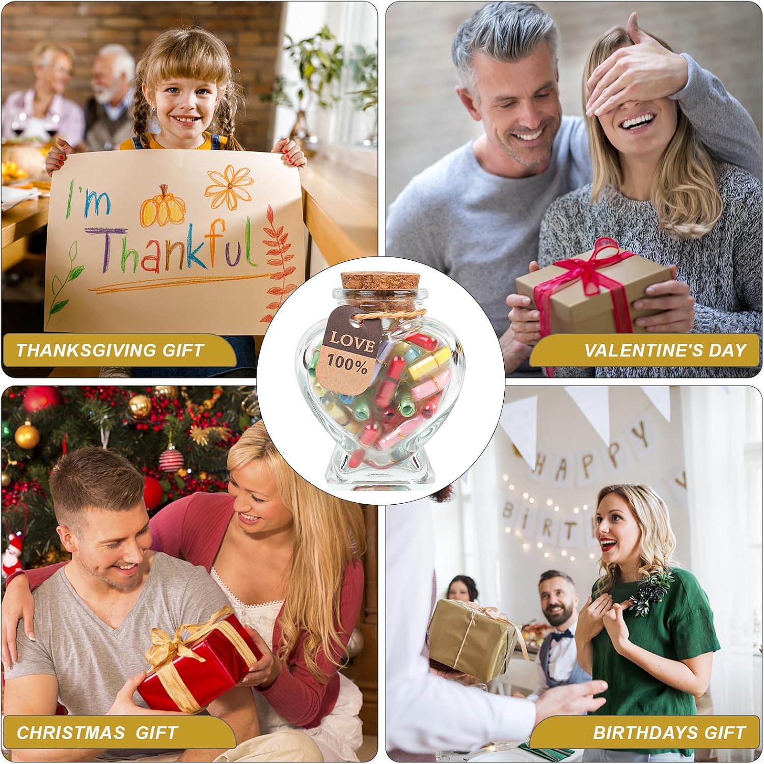- PERFECT GIFTS:Message capsules can help you to deliver the words you can't spit out in a romantic and friendly way. So this message bottle is an ideal gift for anniversary, Valentine's Day, birthday, Mother's Day, Thanksgiving and Christmas to your family and loved ones.