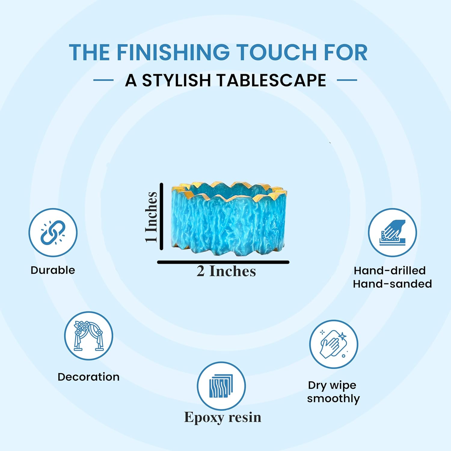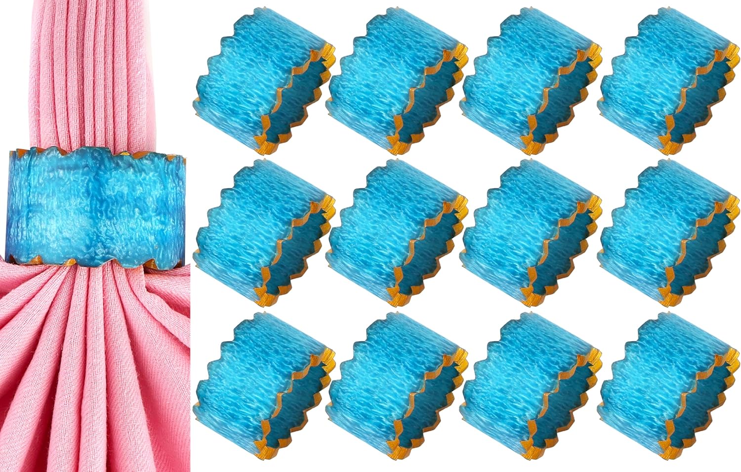 Handmade Epoxy Napkin Rings Set of 12 | Elegant Round Napkin Holders for Dining Table, Weddings, Parties & Home Décor | Durable & Stylish Farmhouse Table Accessories - (Blue Gold) - ALPHA Living HOME