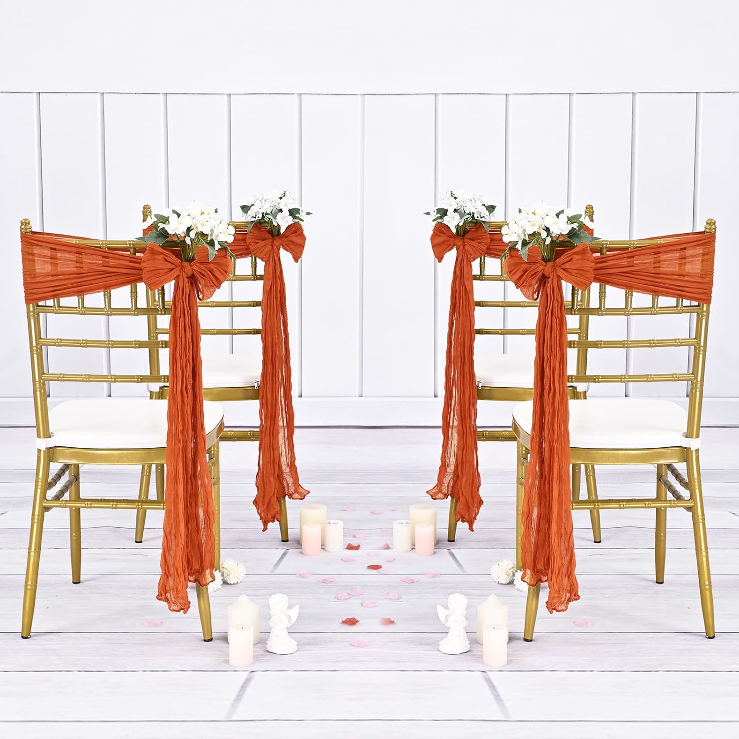 36 Pcs Burnt Orange Cheesecloth Chair Sashes, 16 x 108 inch Gauze Fabric Washable Chair Sashes Bows Designed for Aisle Decorations Universal Chair Cover Decor for Wedding Reception Party Banquet